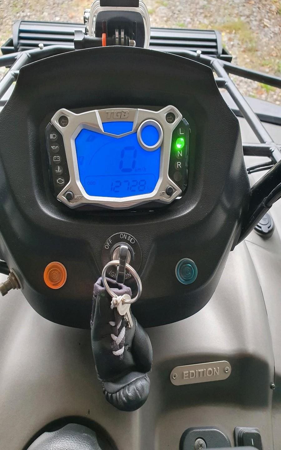 Neu verbaut wurde auch ein rostfreies Drahtseil für die Seilwinde. Eine praktische Klapphalterung für das Nummernschild sorgt für zusätzlichen Komfort. Für eine gute Sichtbarkeit ist das Quad mit einer leistungsstarken LED-Lichtanlage ausgestattet, die für ausreichend Helligkeit sorgt.