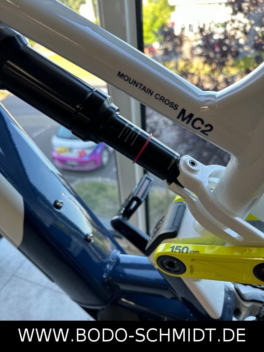 Etwas höher geht immer. Stilvoll rauf auf die Berge und wieder runter. Das MC2 ist ein All-Mountain-eMTB mit 150 mm Federweg, das keine Grenzen kennt. Sein dynamischer Aluminiumrahmen sorgt für ein hervorragendes Handling auf jedem Untergrund, während der neue Shimano EP 8 oder teilweise EP6-Motor verbaut ein kraftvolles, aber natürliches Fahrgefühl beisteuert.* RAHMEN 27.5", Alloy 6061, integrierter Akku, Boost, 150 mm