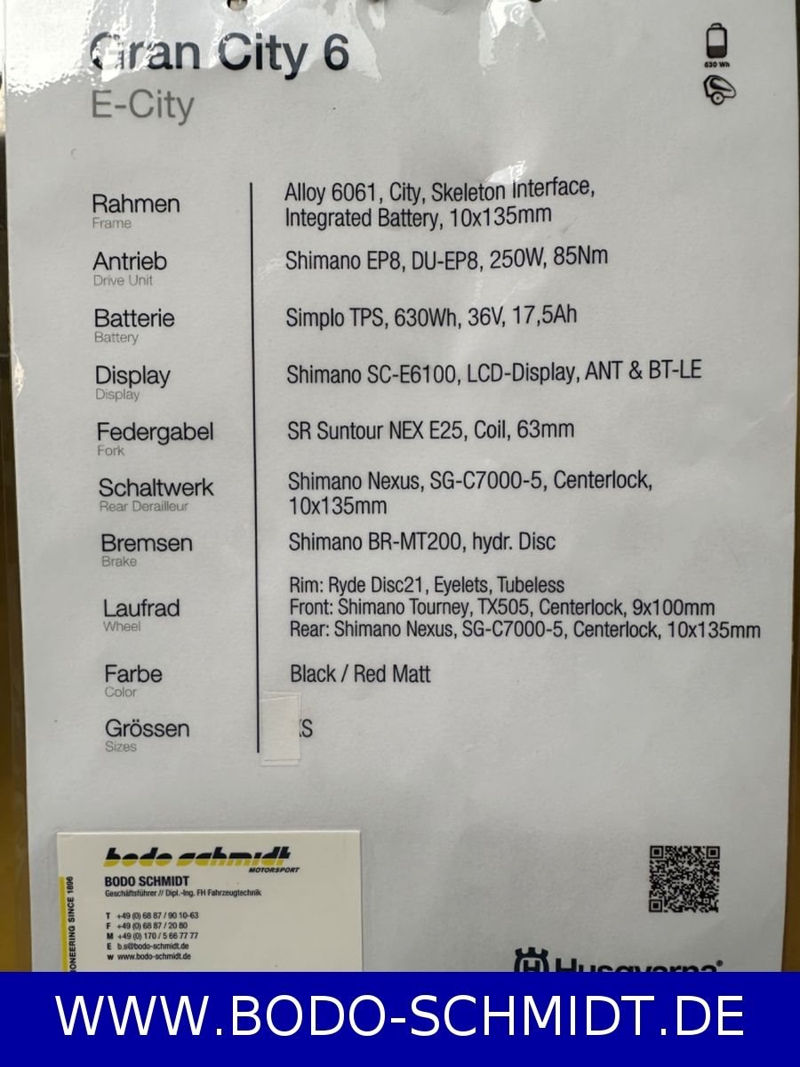 Skeleton Interface 28", Alloy 6061, integrierter Akku, Skeleton Interface GABEL SR SUNTOUR NEX-E25, Feder, 63 mm KURBELARM Husqvarna, Aluminium geschmiedet, Shimano EP24 KASSETTE Gates SureFit, 28 KETTENBLATT Gates CDX, 39 T VORDERRADBREMSE Shimano BR-MT200, 2-Kolben, Hydraulische Scheibenbremse HINTERRADBREMSE Shimano BR-MT200, 2-Kolben, Hydraulische Scheibenbremse GRIFFE Husqvarna Ergo, Schraubgriffe VORBAU Husqvarna 31,8, Ahead, einstellbar SATTELSTÜTZE Husqvarna, 31,6 mm, 350 mm, Dropper Post VORDERRAD Rim: Ryde Disc21, geöst, Tubeless Ready / Hub: Shimano Tourney TX505, Center Lock, 9x100 mm, Schnellspannachse Rim: Ryde Disc21, geöst, Tubeless Ready / Hub: Shimano Tourney, TX505, 9x100 mm, Schnellspannachse HINTERRAD Rim: Ryde Disc21, geöst, Tubeless Ready / Hub: Shimano Nexus SG-C7002, Center Lock, 10x135 mm, Schraubachse REIFEN Schwalbe Delta Cruiser/Energizer Plus, 50-559, 26, 2.0 Schwalbe Delta Cruiser/Energizer Plus, 50-622, 28, 2.0 DISPLAY Shimano SC-E6100, LCD-Display, ANT, Bluetooth LE AKKU Core S1, 630 Wh, 36 V, 17,5 Ah LADEGERÄT Charger S, 4 A GEPÄCKTRÄGER Husqvarna Tour, Federklappe, MIK, 25 kg belastbar SCHEINWERFER Litemove HKSE-70, 70 lx RÜCKLICHT AXA Blueline E FEDERWEG GABEL 63 mmSTVZO KONFORM STVZO JA OPERATION AREA Straße GEWICHT 26.9 kg27 kgZUL. FAHRZEUGGESAMTGEWICHT 130 kgANHÄNGERFREIGABE keine Anhängerfreigabe AKKUKAPAZITÄT 630 WhBEDIENEINHEIT Shimano SW-E7000-L GEPÄCKTRÄGERSYSTEM Federklappe MIK SCHUTZBLECHE Eurofender Tempo KETTENSCHUTZ Horn Catena A09 PEDALE Husqvarna, Aluminium STÄNDER Ursus MOOI, Hinterbauständer KSA18, einstellbar BREMSEN BREMSE HINTEN TYP Hydraulische Scheibenbremse RAHMEN MATERIAL Aluminium SCHALTUNGSTYP Nabenschaltung SCHALTHEBEL Shimano Nexus, SL-C7000-5, Revoshift KETTE Gates CDX Belt STEUERSATZ Husqvarna ZS44/ZS56 RAHMENFORM Wave MOTOR Shimano EP8, DU-EP800, 250 W, 85 Nm BREMSSCHEIBE HINTEN Shimano SM-RT30, 160 mm, Center Lock BREMSSCHEIBE VORNE Shimano SM-RT30, 180 mm, Center Lock BREMSHEBEL Shimano BL-MT201, Bremshebel einstellbar, 3-Finger KLEMMSCHELLE Husqvarna 34,9, Schnellspanner LAUFRADGRÖSSE 26"/559mm 28"/622mm, 28"/635mm FARBE 1 black AUSFÜHRUNG EUROPE GRUPPIERUNG Bicycle Farbe gesamt