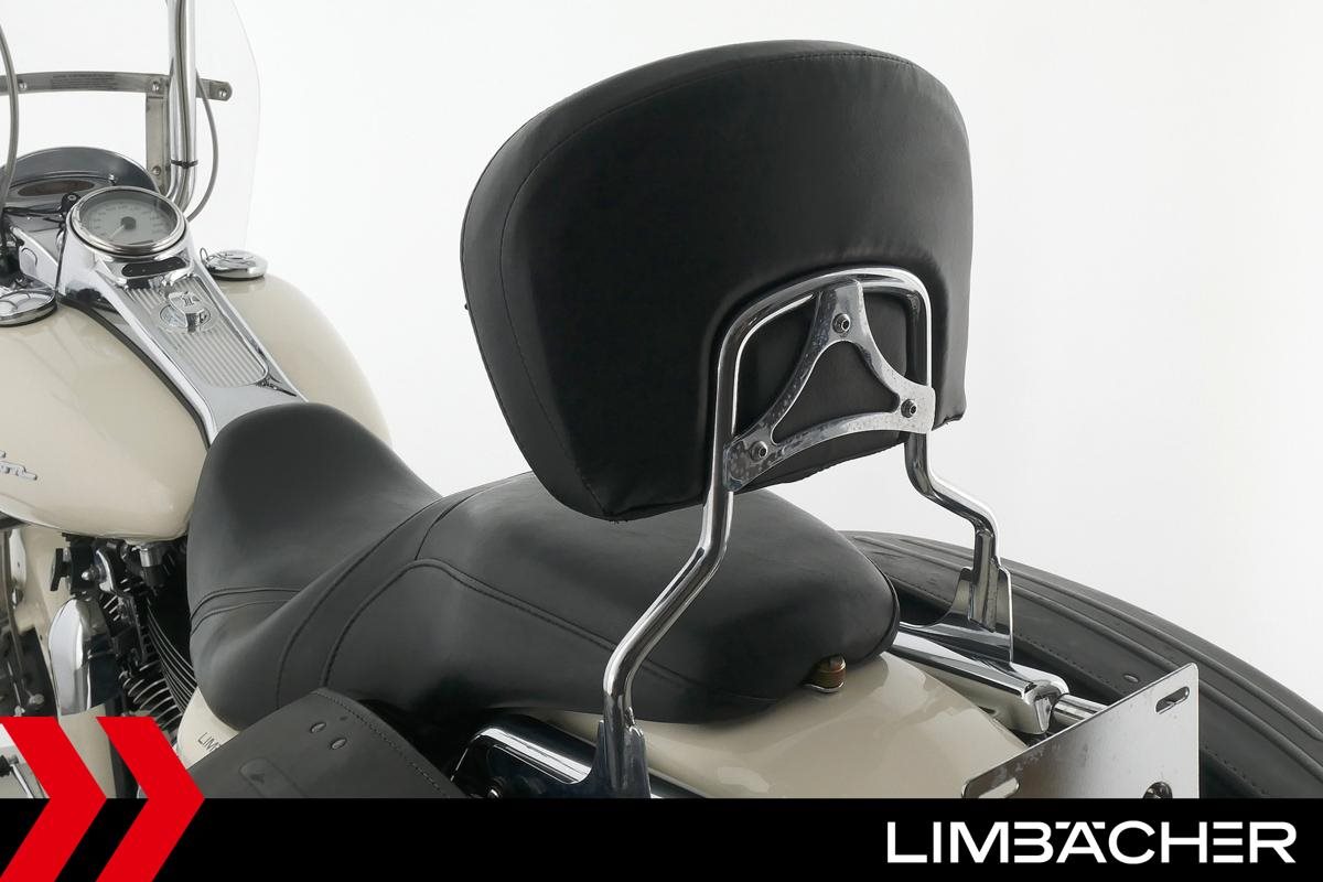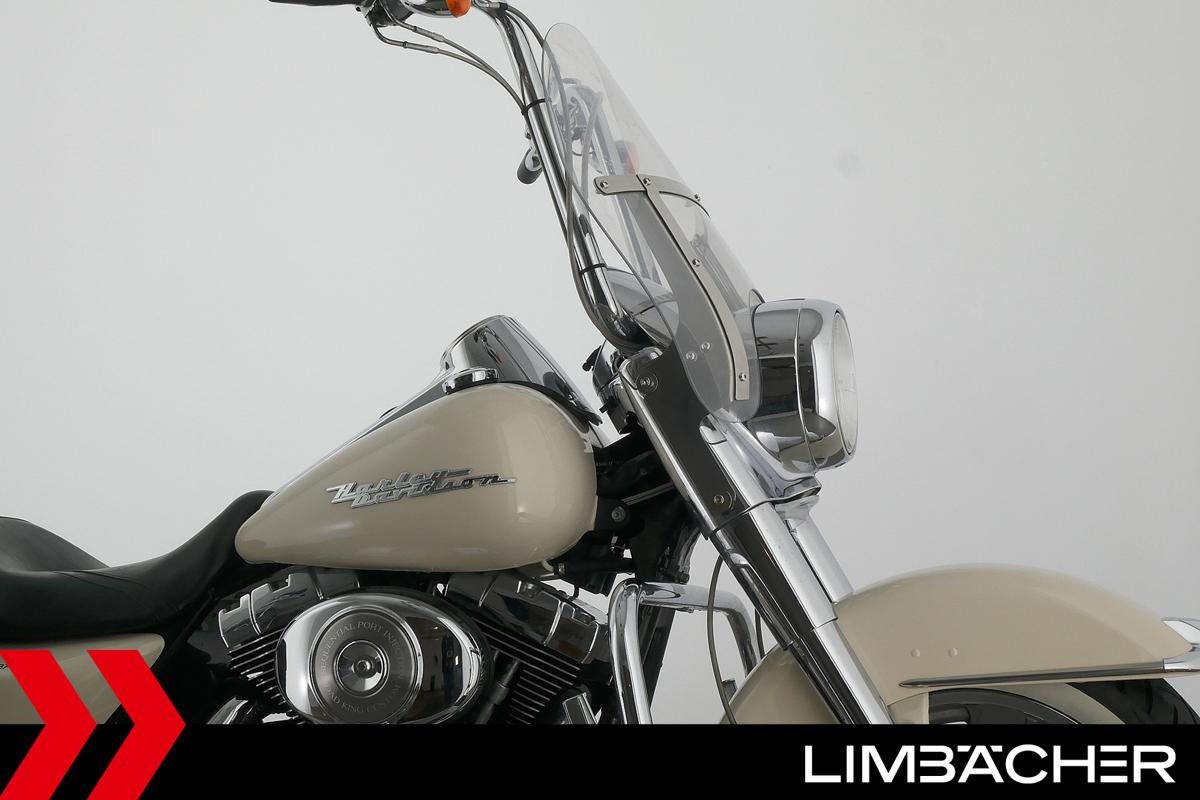 Eine Harley-Davidson Road King Custom FLHRSI in gepflegtem Zustand u.a. mit Penzl-Klappenauspuff manuell sowie Sturzbügeln.