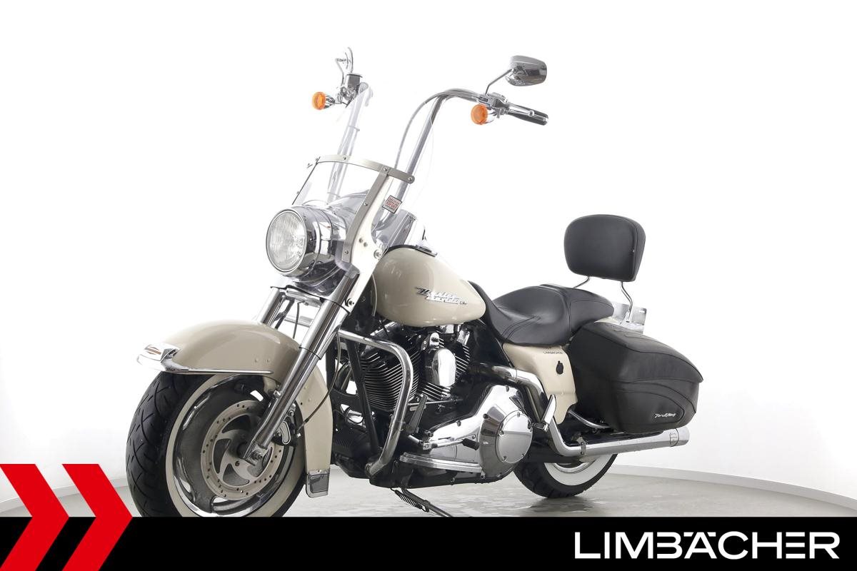 Eine Harley-Davidson Road King Custom FLHRSI in gepflegtem Zustand u.a. mit Penzl-Klappenauspuff manuell sowie Sturzbügeln.
