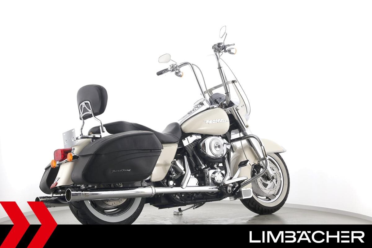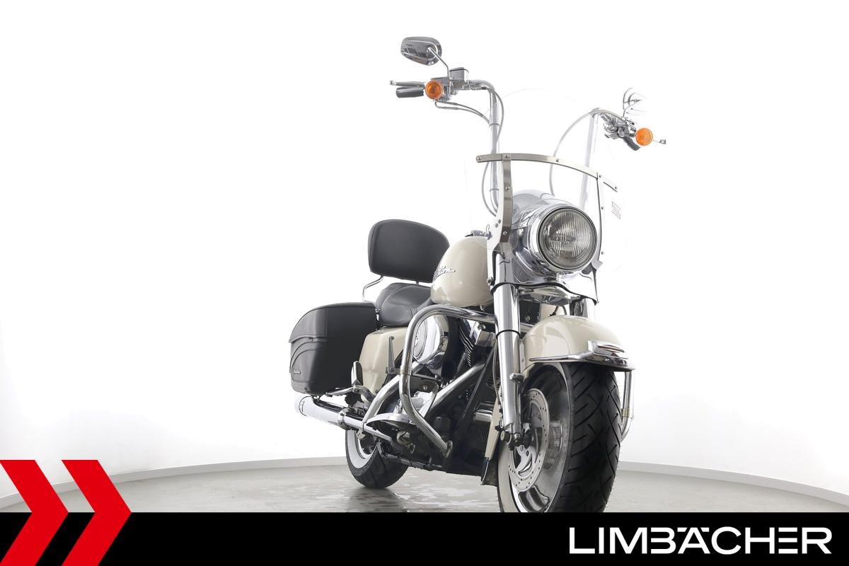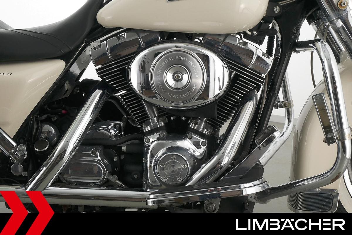 Eine Harley-Davidson Road King Custom FLHRSI in gepflegtem Zustand u.a. mit Penzl-Klappenauspuff manuell sowie Sturzbügeln.