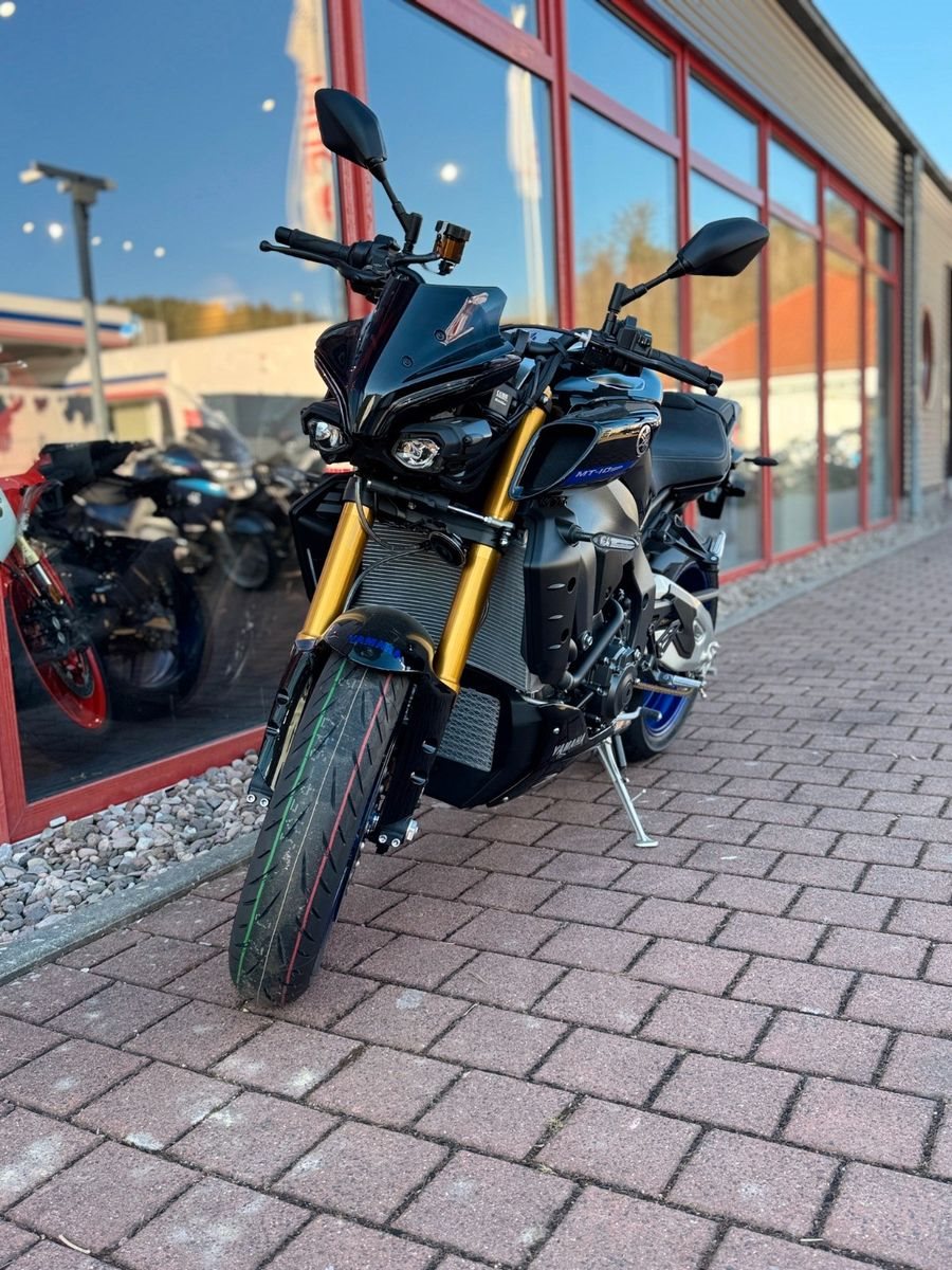 Dieses brachiale, ikonische Naked Sport Bike ist das erste Motorrad der Welt, das mit einem elektronisch gesteuerten 6-Mode Regelventil-Fahrwerk von Öhlins ausgestattet ist. Im semiaktiven Modus wird die Dämpfung automatisch an die Fahrbedingungen angepasst und gewährleistet ein Höchstmaß an Fahrwerkspräzision beim Bremsen, Beschleunigen und in Kurven.Damit Du die gesteigerte Leistung und das Drehmoment des 998 cm Motors voll ausschöpfen kannst, erfasst ein Trägheitsmessgerät (IMU) mit sechs Messachsen die Beschleunigungs- und Lagewerte für die Kontrolle von Traktion, Slides, Wheelies, Motorbremse und Bremskraft. Zu den exklusiven Ausstattungsmerkmalen der MT-10 SP gehören auch ein dreiteiliger Bugspoiler und Stahlflex-Bremsleitungen. Mit der dynamischen Farbgebung "Icon Performance" und dem Premium-Finish lässt die MT-10 SP auch äußerlich keine Wünsche offen.