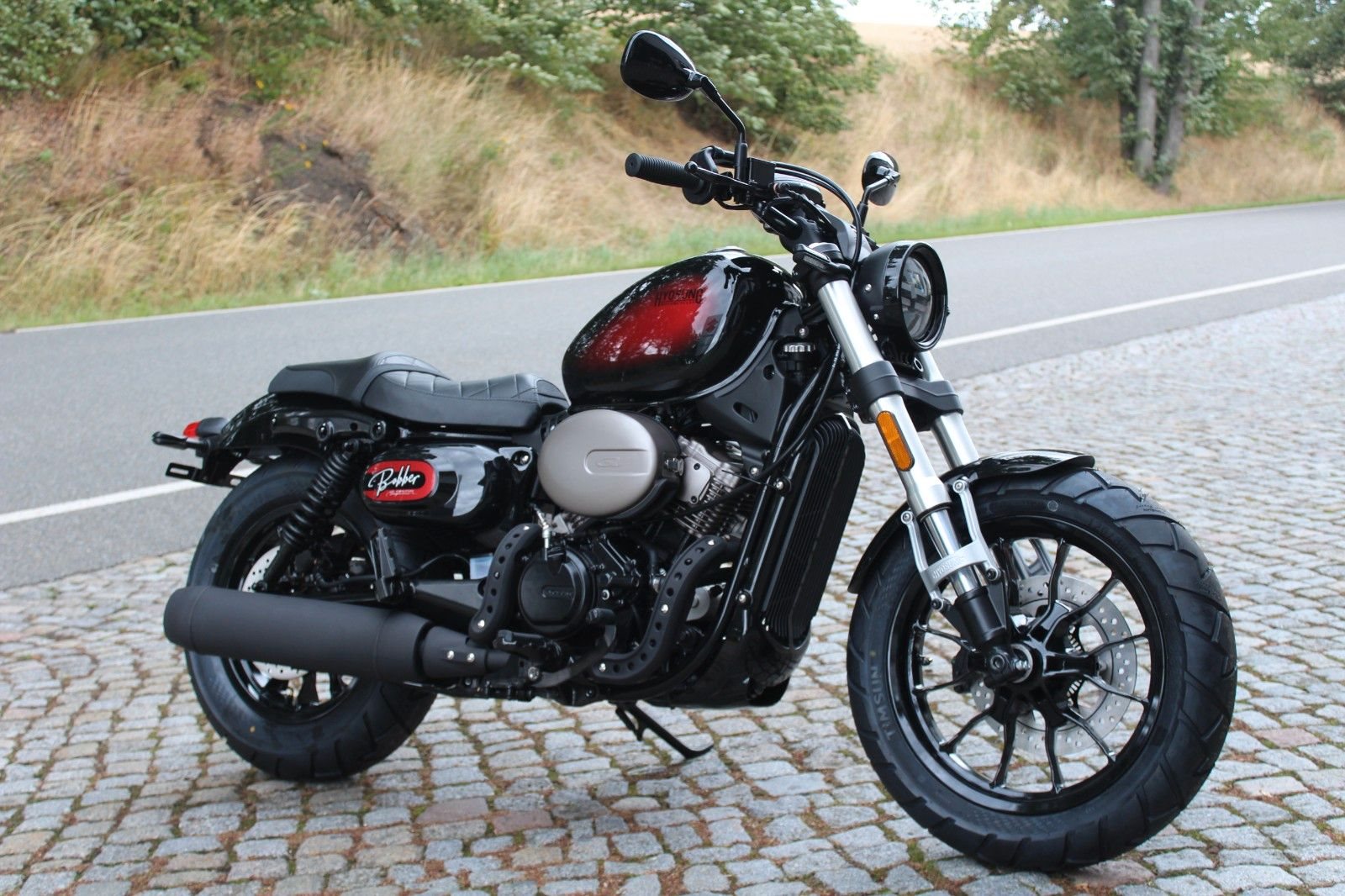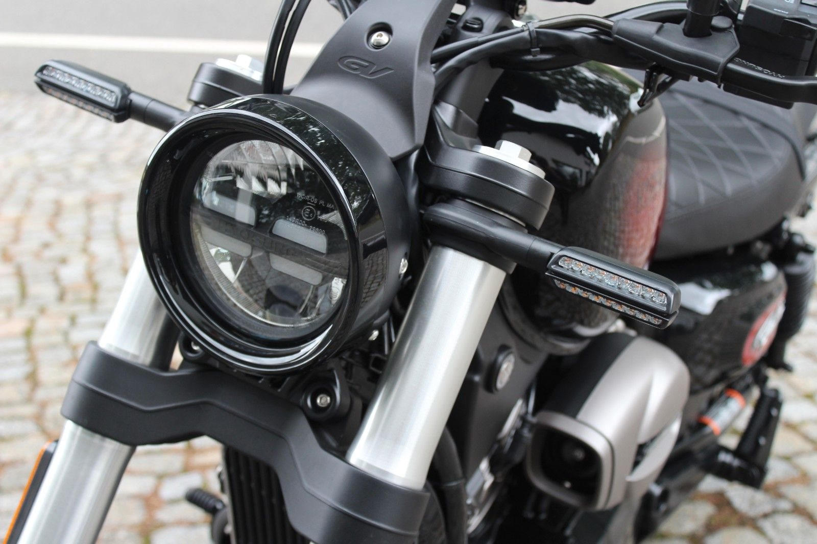 - LED Scheinwerfer, LED Blinker, 2 Zylinder V-Motor, Wasserkühlung, ABS, Upside-Down-Gabel