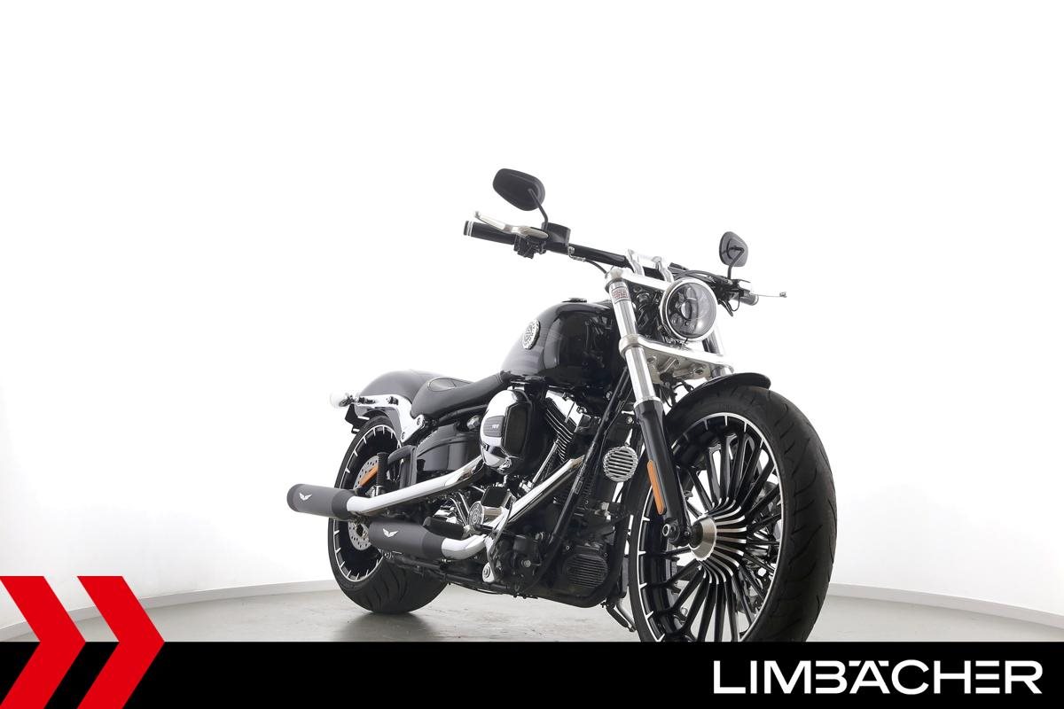 Eine Harley-Davidson Softail Breakout FXSB aus zweiter Hand in gepflegtem Zustand u.a. mit Penzl-Klappenauspuffanlage und Turbinenfelgen.