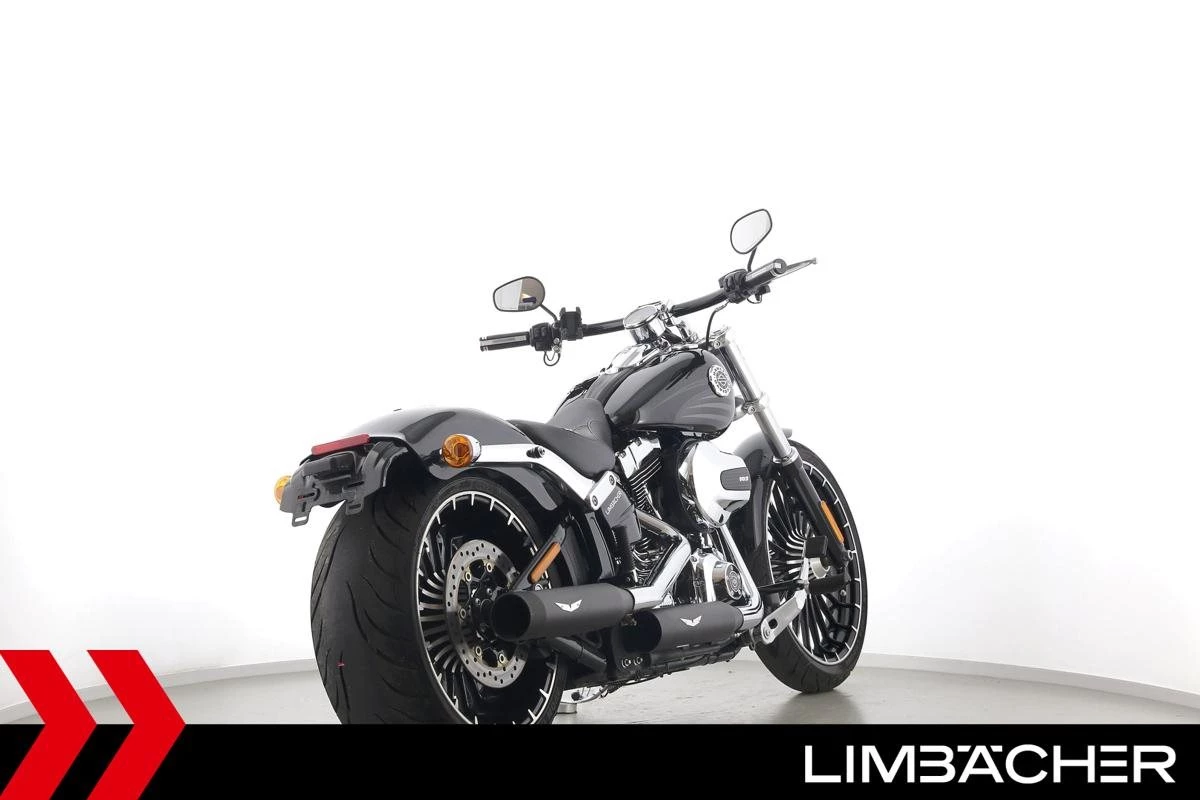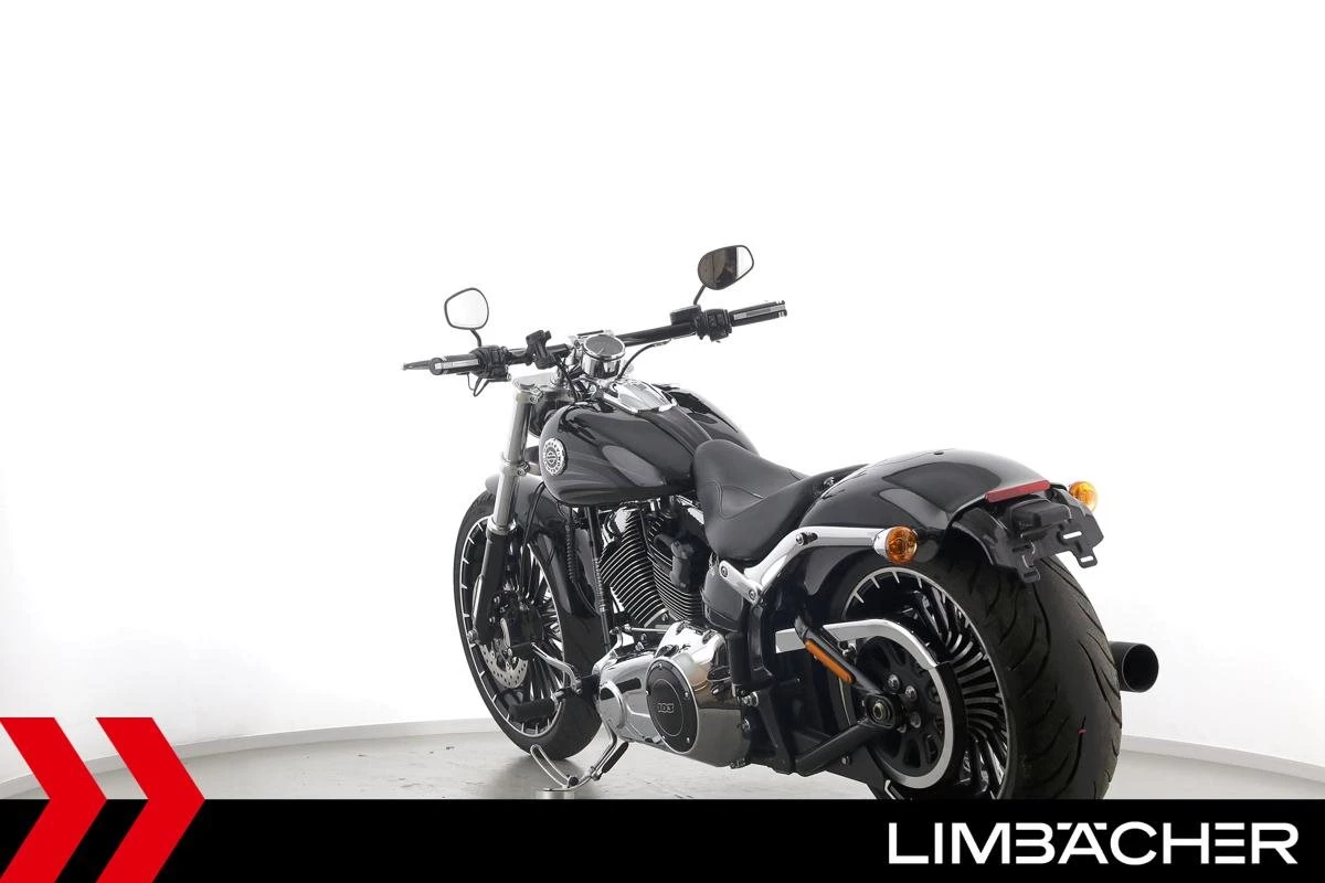 Eine Harley-Davidson Softail Breakout FXSB aus zweiter Hand in gepflegtem Zustand u.a. mit Penzl-Klappenauspuffanlage und Turbinenfelgen.