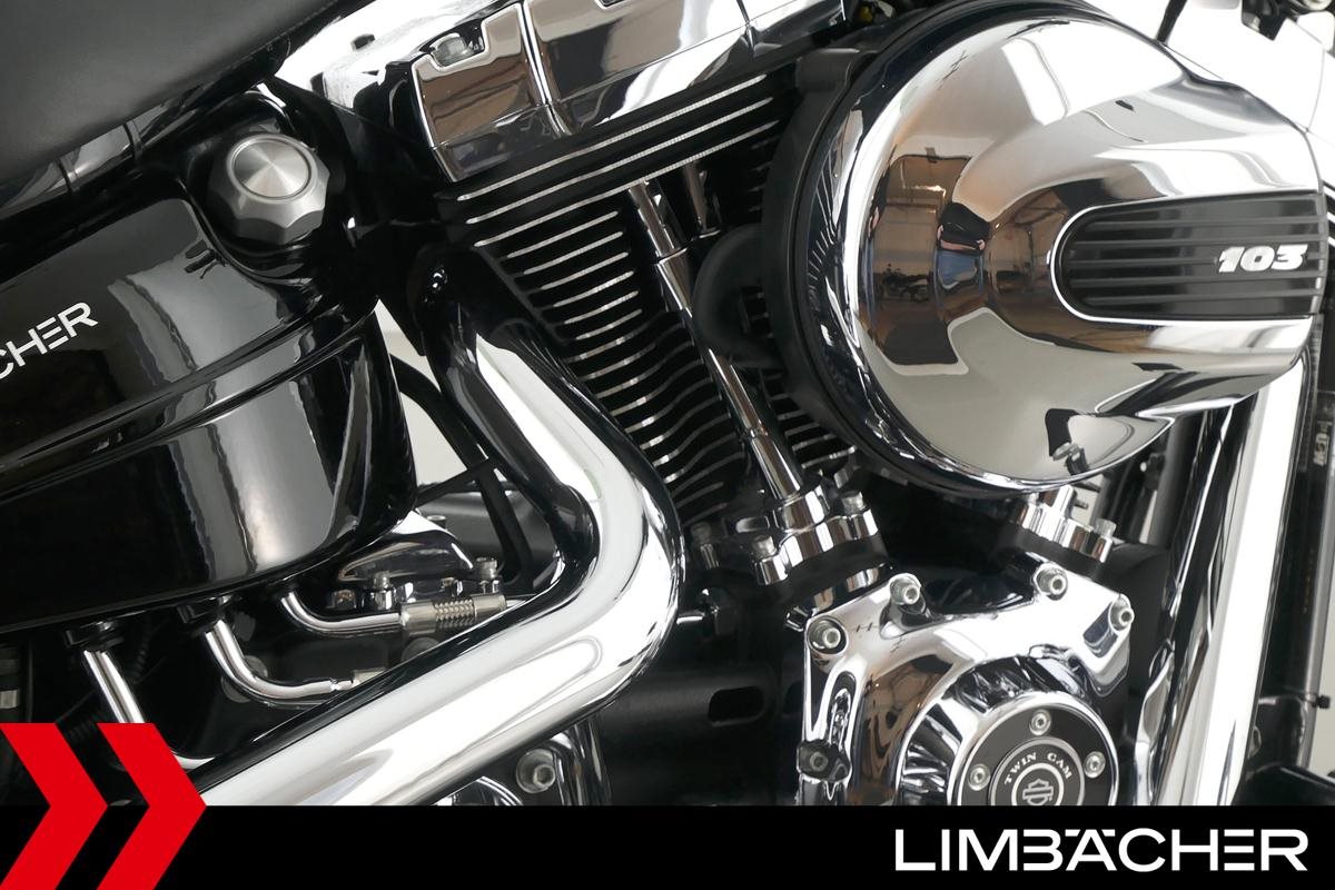 Eine Harley-Davidson Softail Breakout FXSB aus zweiter Hand in gepflegtem Zustand u.a. mit Penzl-Klappenauspuffanlage und Turbinenfelgen.