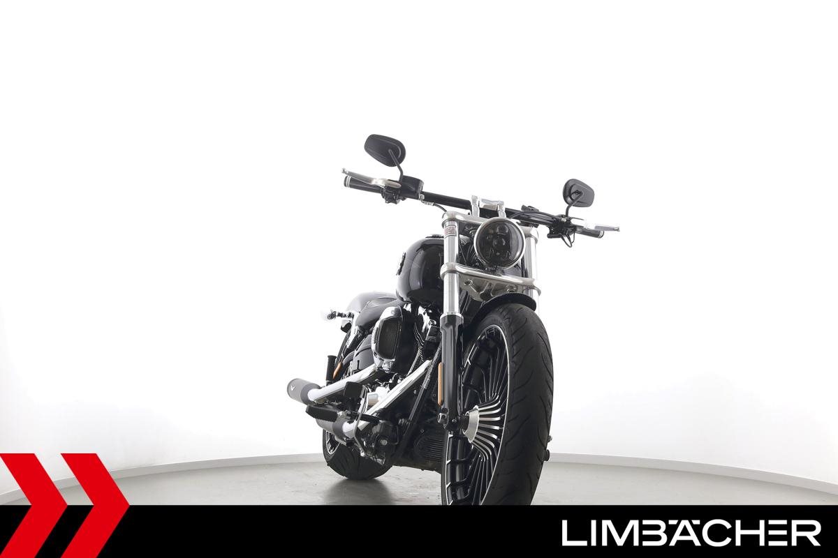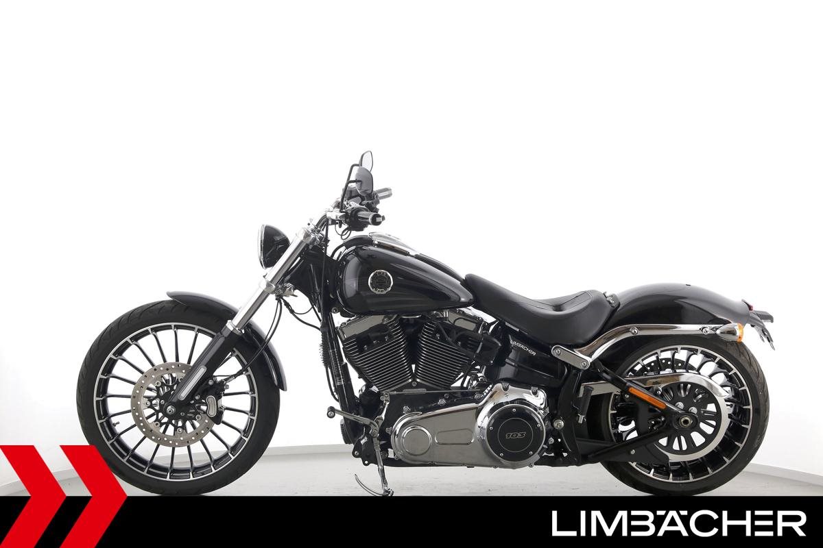Eine Harley-Davidson Softail Breakout FXSB aus zweiter Hand in gepflegtem Zustand u.a. mit Penzl-Klappenauspuffanlage und Turbinenfelgen.