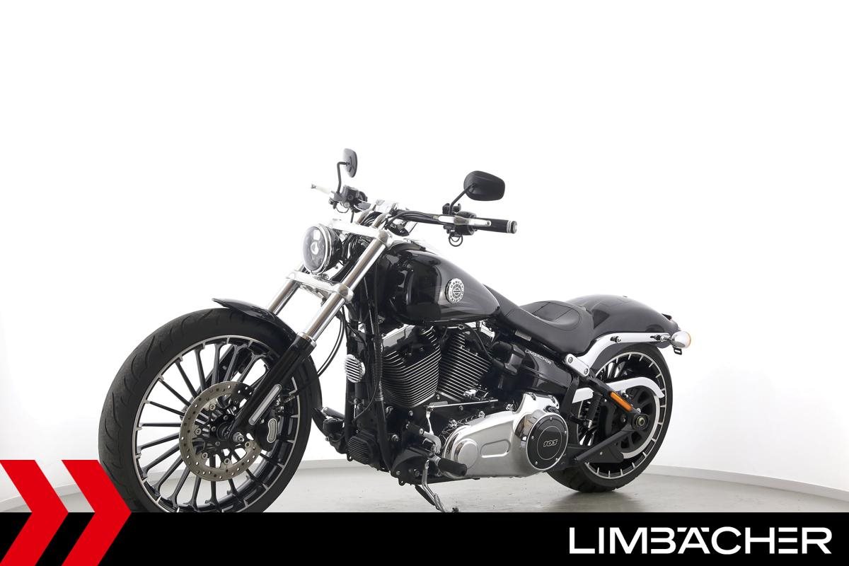 Eine Harley-Davidson Softail Breakout FXSB aus zweiter Hand in gepflegtem Zustand u.a. mit Penzl-Klappenauspuffanlage und Turbinenfelgen.