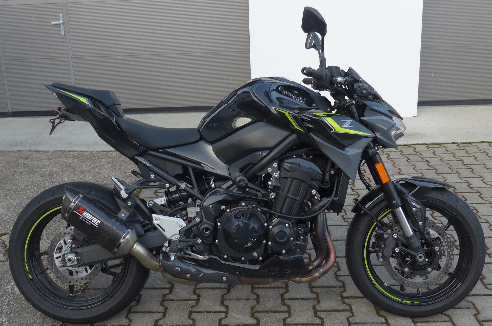Zum Verkauf steht unsere Kawasaki Z900 ABS mit Erstzulassung im März 2024. Das gepflegte Vorführfahrzeug ist unfallfrei und befindet sich den Kilometern entsprechend in einem sehr gepflegten Zustand. Die 1.000km Inspektion wurde bereits in unserer Kawasaki Vertragswerkstatt erledigt, dementsprechend läuft die Garantie läuft noch bis 03/2028. Auch alle Verschleißteile befinden sich in gutem Zustand. Das unten aufgelistete hochwertige Zubehör im Wert von über 2.000€ ist im Fahrzeugpreis inbegriffen. Zu unserem Geschäftszeiten können Sie das Fahrzeug besichtigen und nach vorheriger Absprache auch Probefahren. Bei weiteren Fragen stehen wir gerne zur Verfügung.