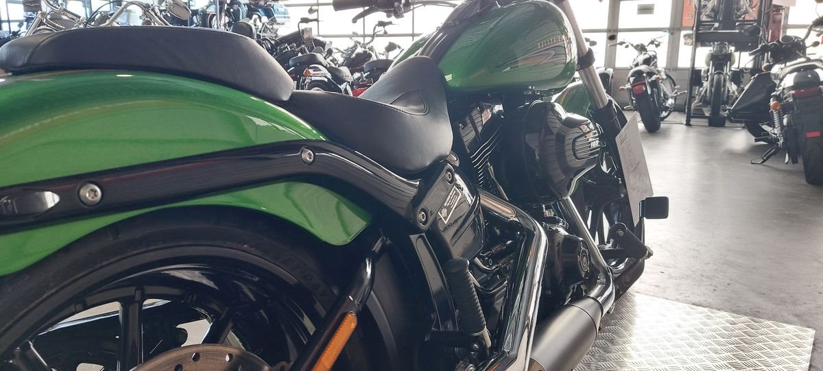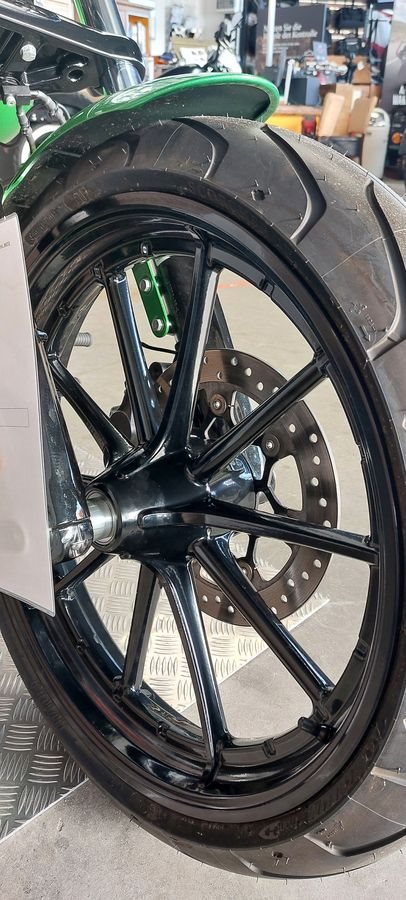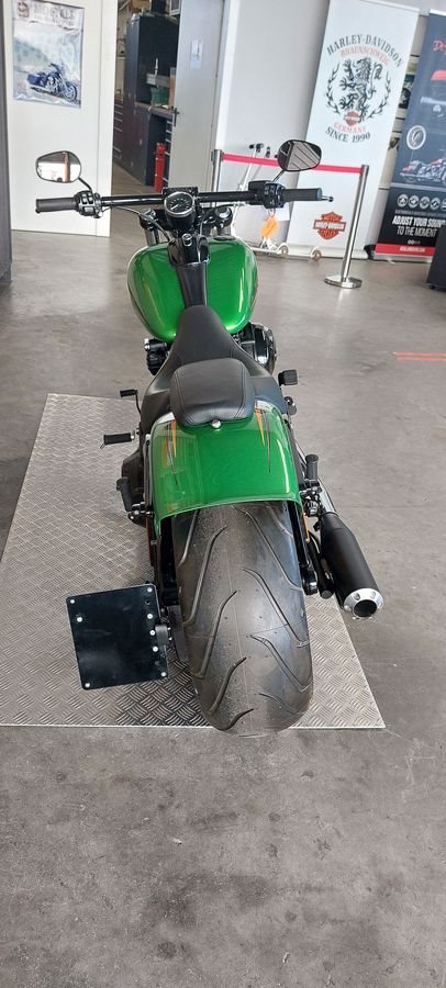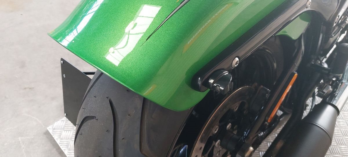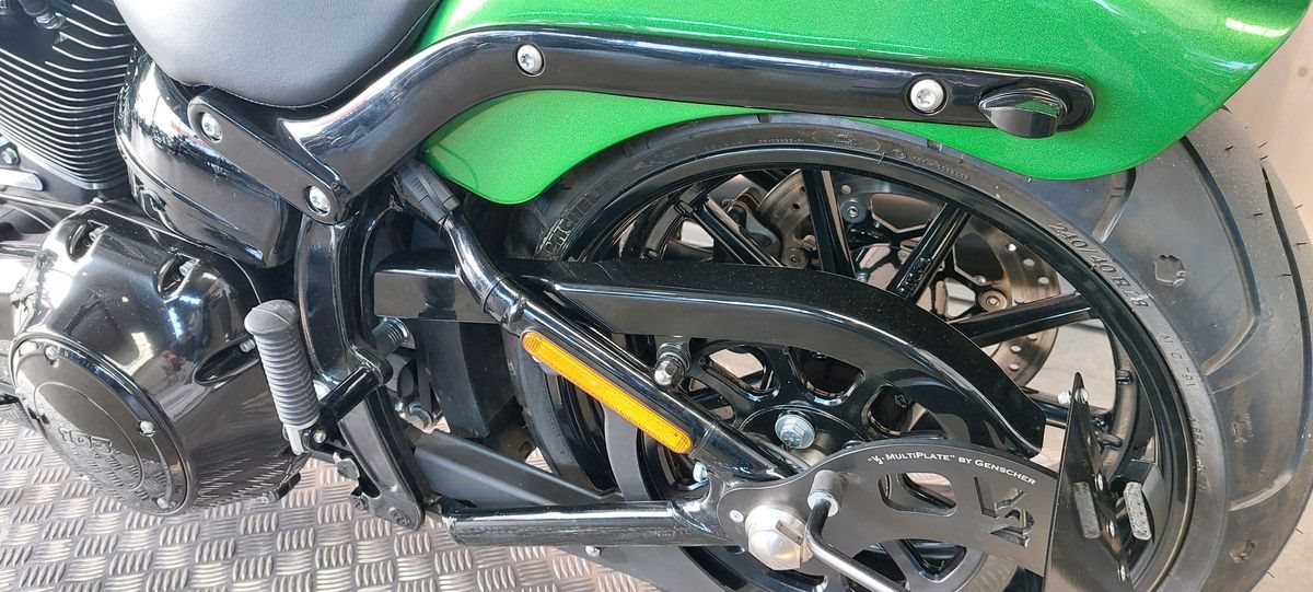 • Der breiteste Hinterreifen der serienmäßigen Harleys kommt gut zur Geltung