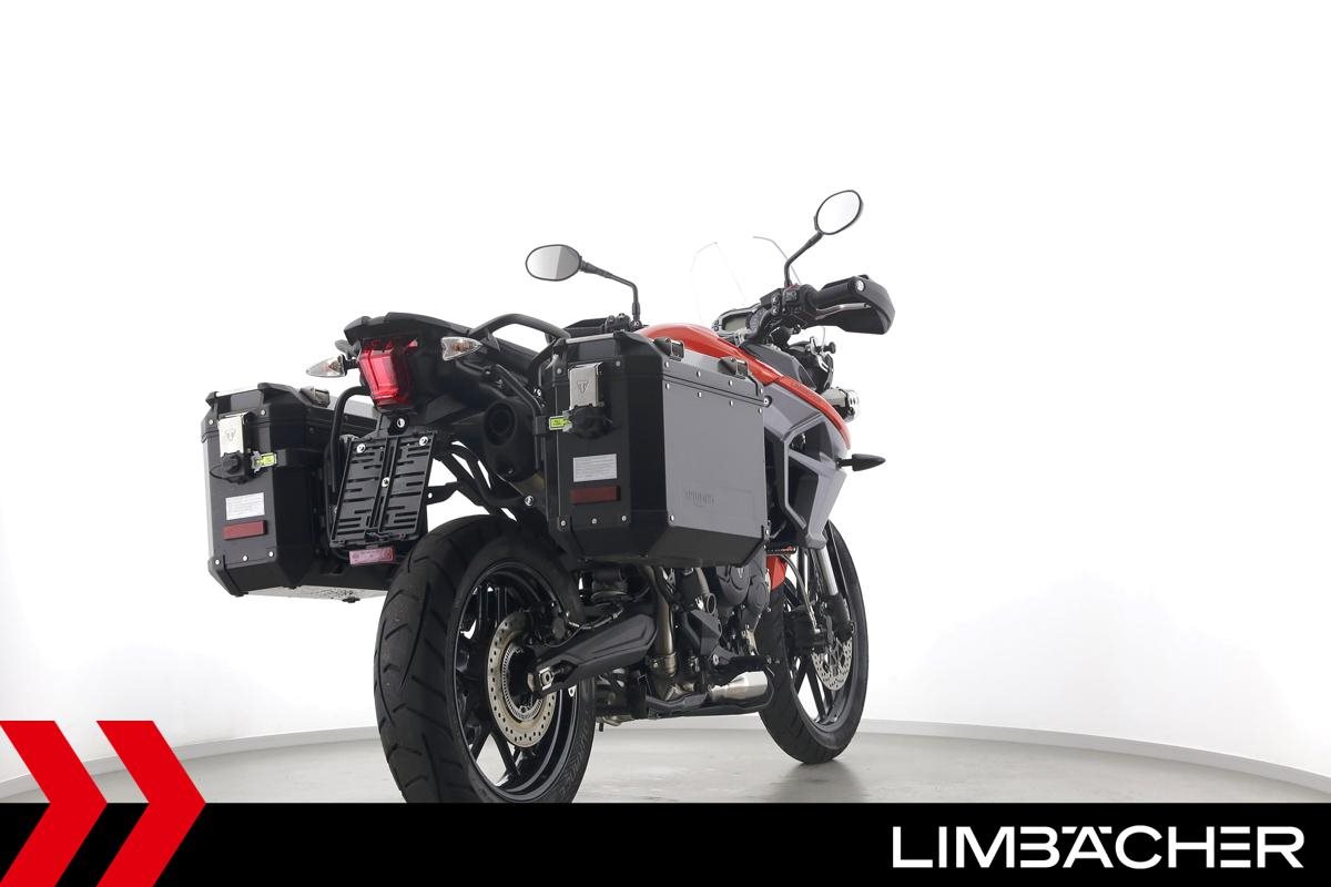 Eine Triumph Tiger 800 XRT aus erster Hand in sehr gepflegtem Zustand u.a. mit Triumph-Alukoffersystem gleichschliessend sowie Zusatzscheinwerfern.