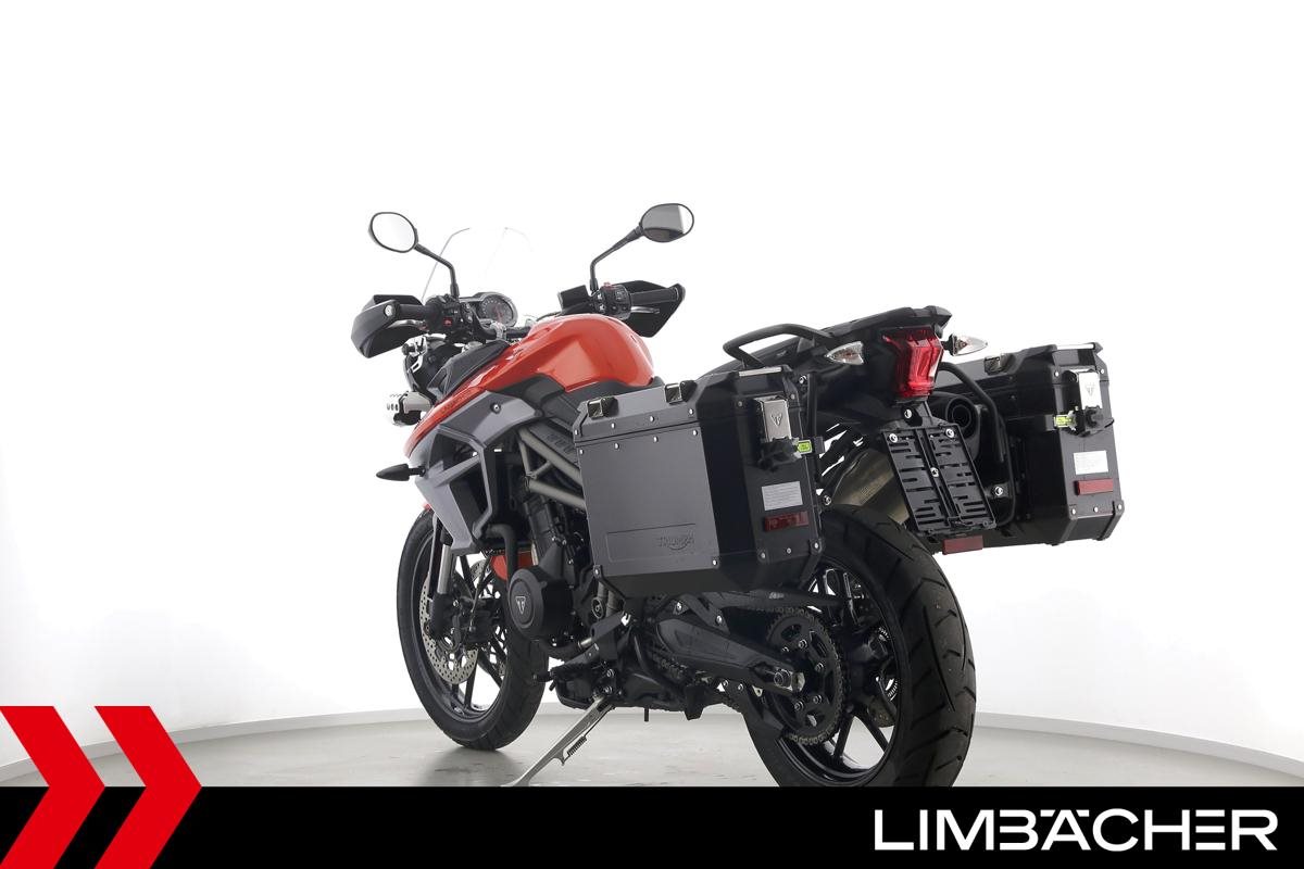 Eine Triumph Tiger 800 XRT aus erster Hand in sehr gepflegtem Zustand u.a. mit Triumph-Alukoffersystem gleichschliessend sowie Zusatzscheinwerfern.