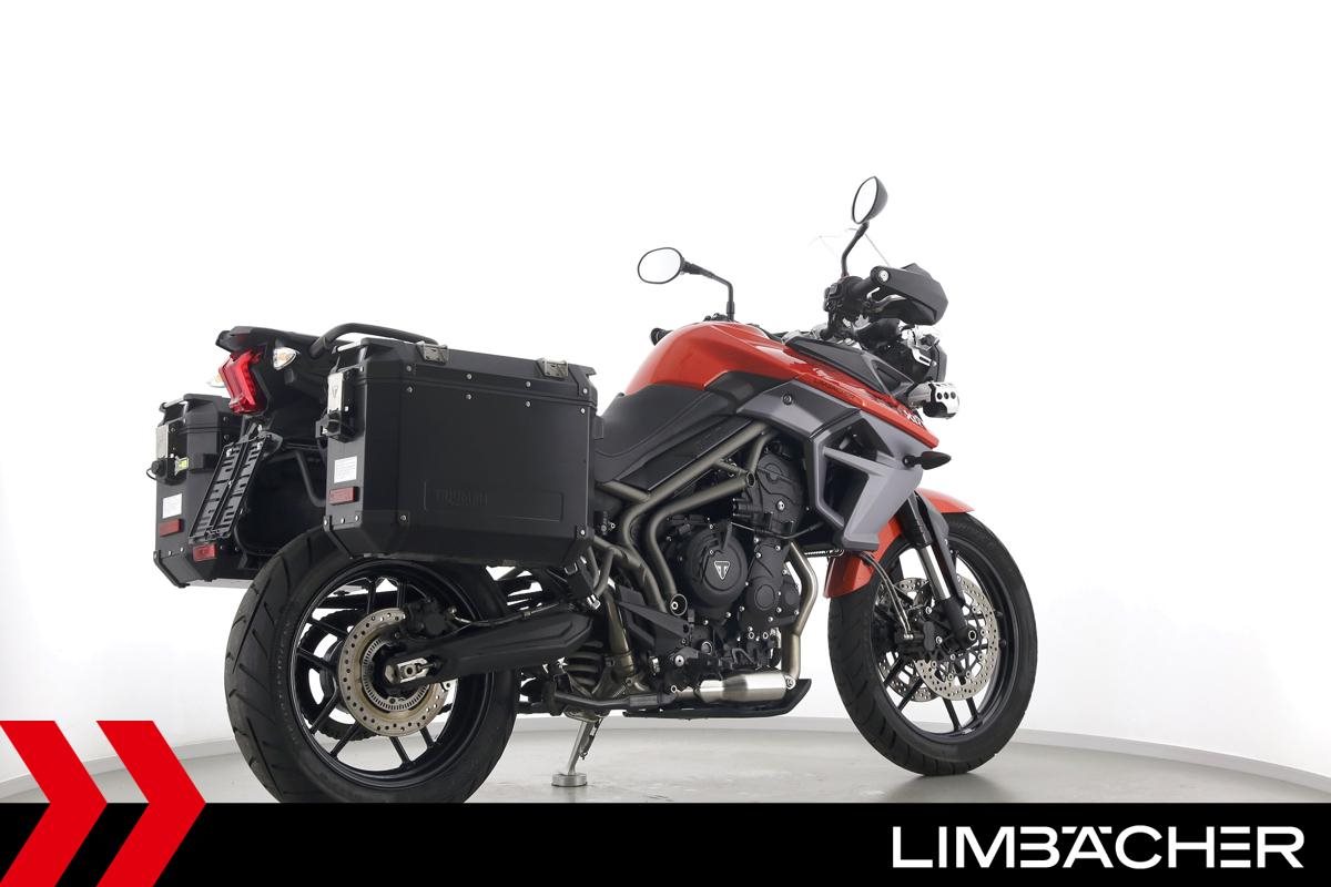 Eine Triumph Tiger 800 XRT aus erster Hand in sehr gepflegtem Zustand u.a. mit Triumph-Alukoffersystem gleichschliessend sowie Zusatzscheinwerfern.