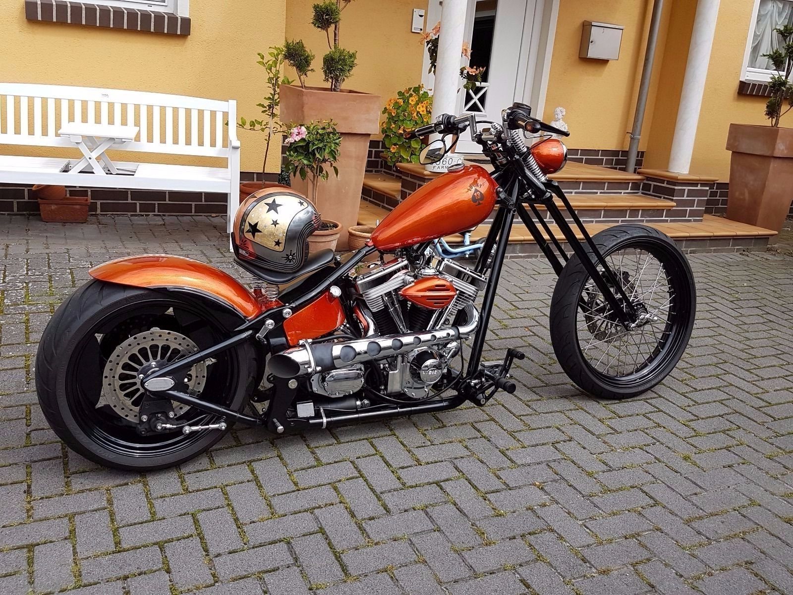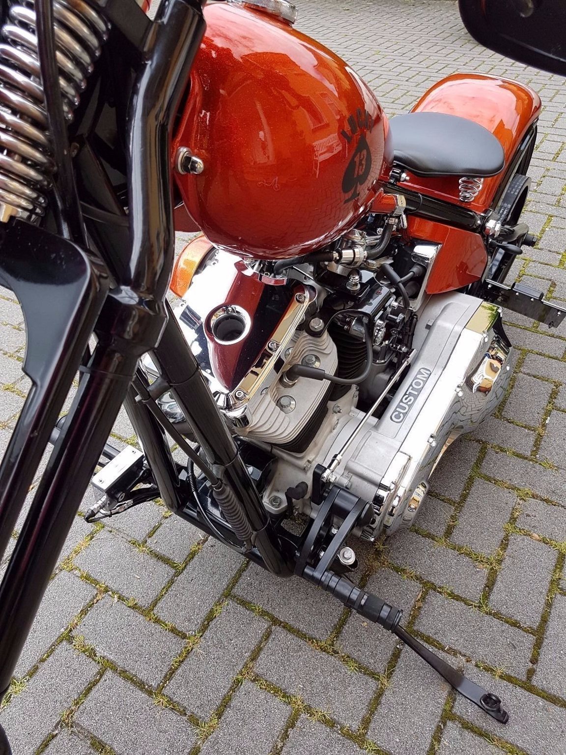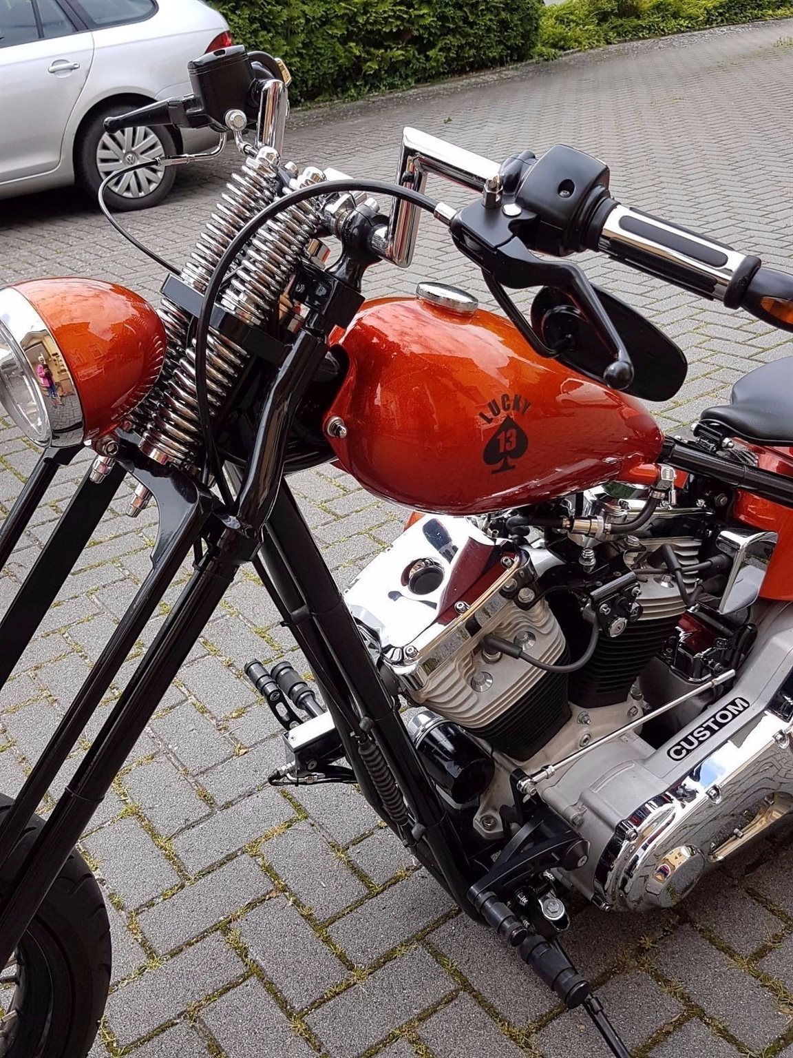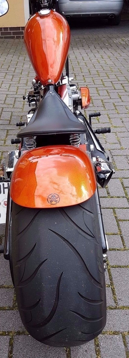 super fahrbares custombike der extraklasse, auf softail daytec rahmen tief, stark und laut.