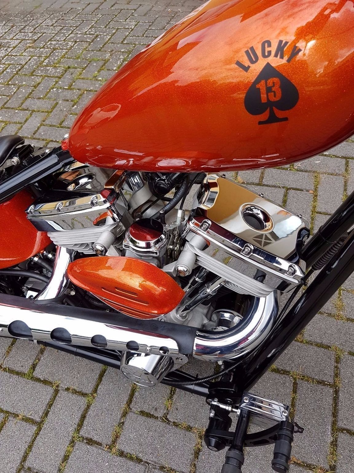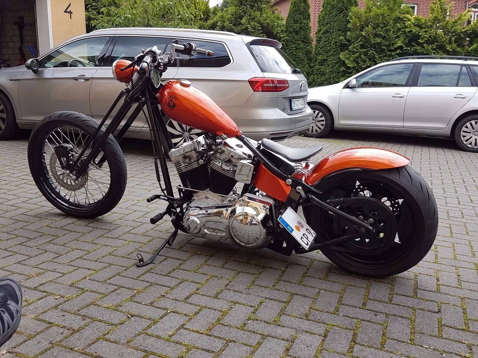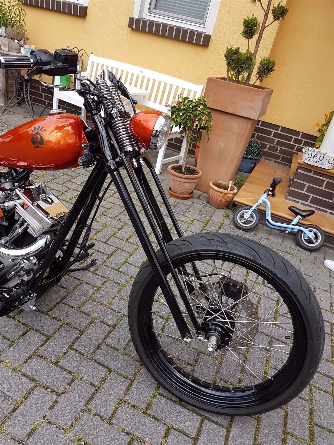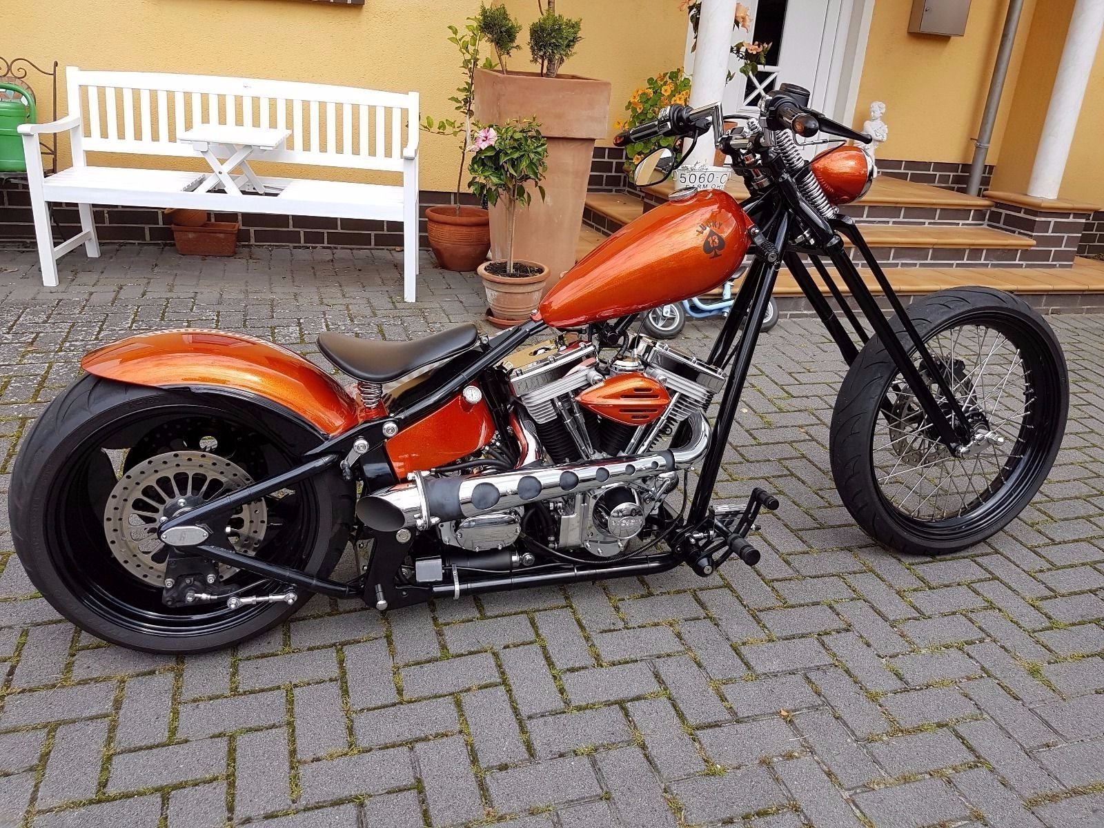 super fahrbares custombike der extraklasse, auf softail daytec rahmen tief, stark und laut.