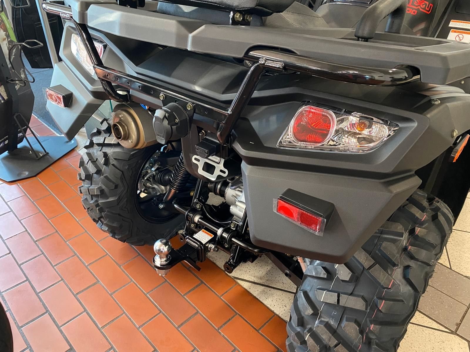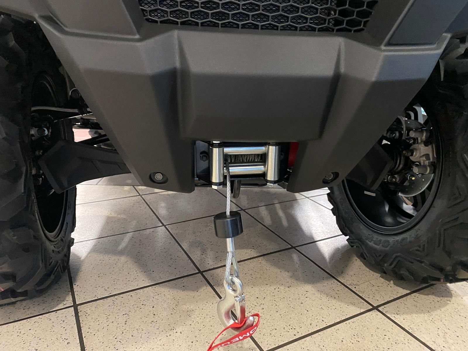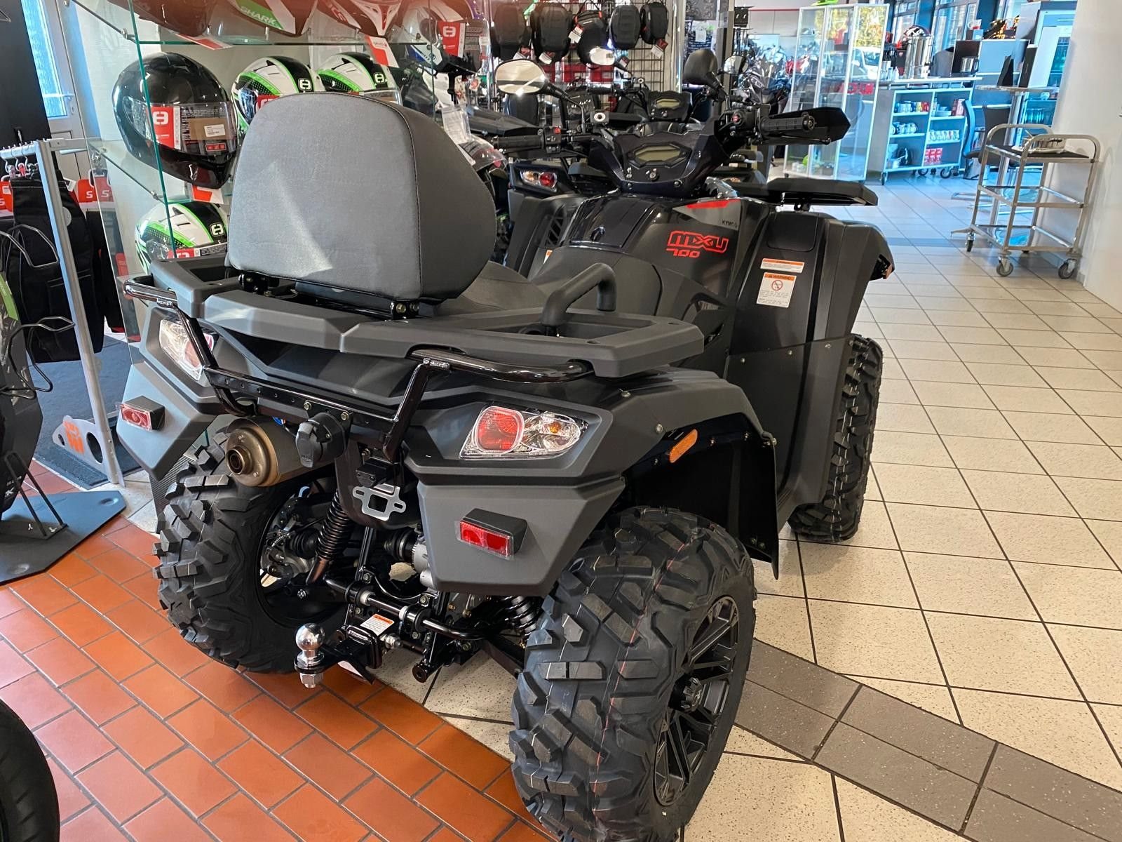 Das Oberhaupt der MXU-Reihe ist und bleibt unser bislang stärkstes und größtes ATV in der KYMCO Familie. Doch dank elektronische Lenkunterstützung reagiert das MXU 700i T EPS Offroad LOF geschwindigkeitsabhängig und lässt beim Handling vergessen, dass man auf einem echten Titan auf vier Rädern sitzt.Mächtige, größere Walzen - aufgezogen auf sportlichen Doppelspeichen-Felgen - verschaffen dem KYMCO-Flaggschiff einen klaren Vorteil: Mit den größeren Rädern hat das ATV mehr Bodenfreiheit im groben Gelände. Für optimalen Schutz sorgen neben dem vorderen Rammschutz erstmals zahlreiche attraktive Verkleidungen - mit einem besonderen Effekt: die neuen Radverkleidungen lassen das das Premium-ATV optisch breiter wirken.Der größere 21 Liter Tank wurde neu angeordnet (der Tankeinfüllstutzen befindet sich jetzt hinten), was für einen besseren Schwerpunkt und damit für mehr Balance im Gelände sorgt. Gleichzeitig wird Raum für ein neues, raffiniertes Staufach frei.Auch die restliche Ausstattung lässt das Herz höher schlagen, darunter u.a.: stufenlose Variomatik, zuschaltbarer Allradantrieb und Vorderachssperre, Untersetzungsgetriebe, Bergabfahrhilfe, kräftige Seilwinde und ein zentrales LCD-Cockpit.
