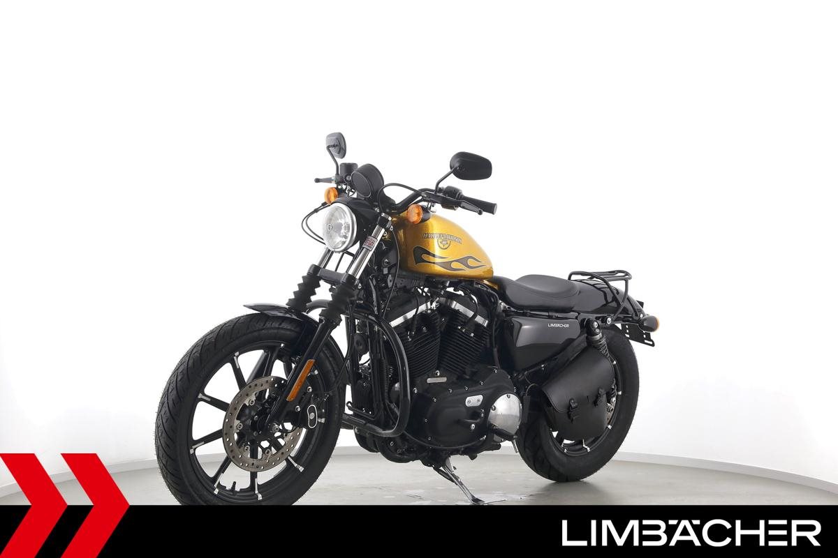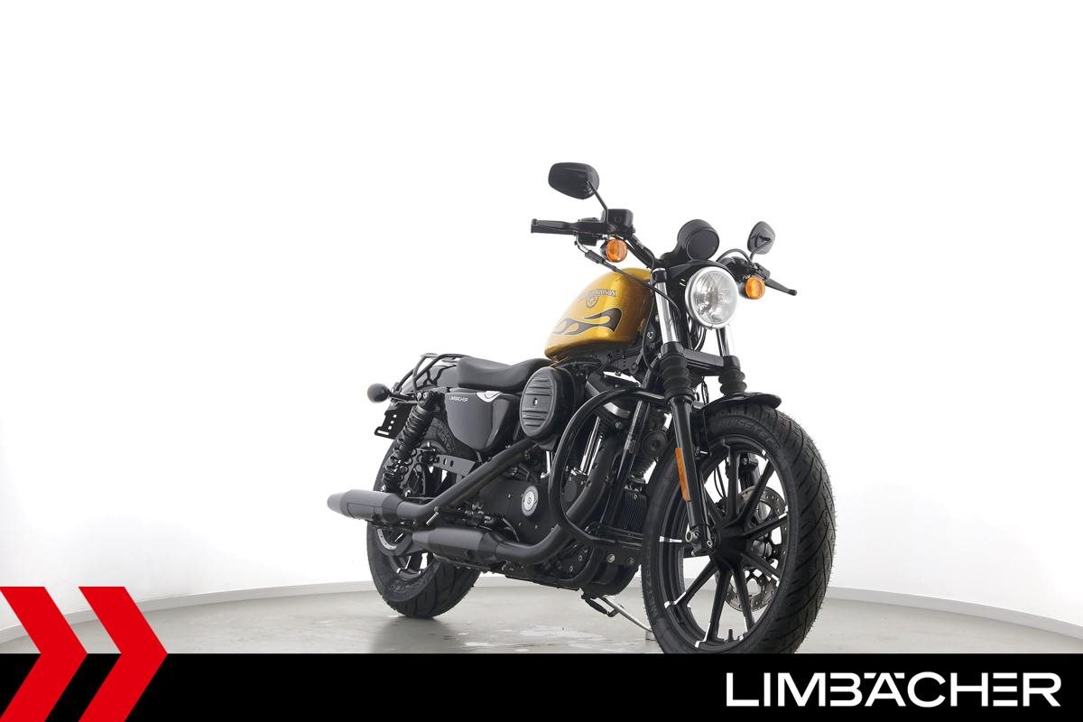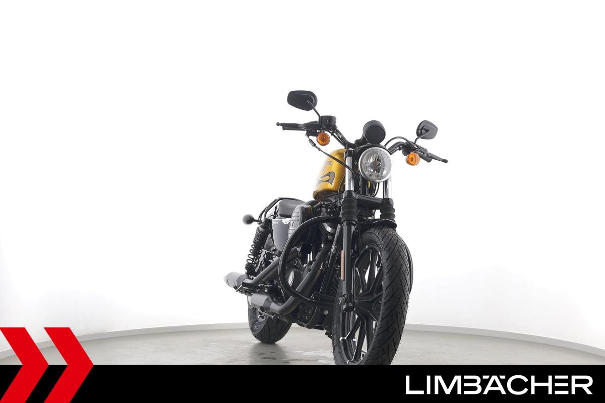Eine scheckheftgepflegte Harley-Davidson Sportster XL 883 N Iron aus zweiter Hand in sehr gepflegtem Zustand u.a. mit Sturzbügel sowie Leder-Schwingentasche.