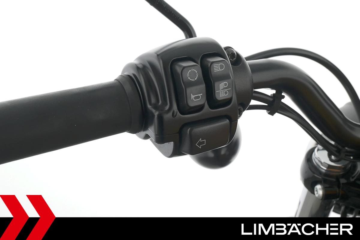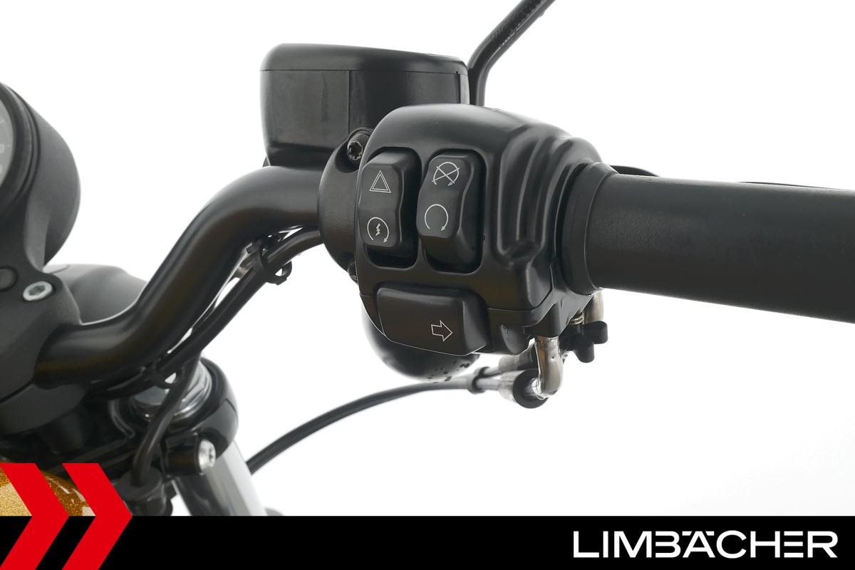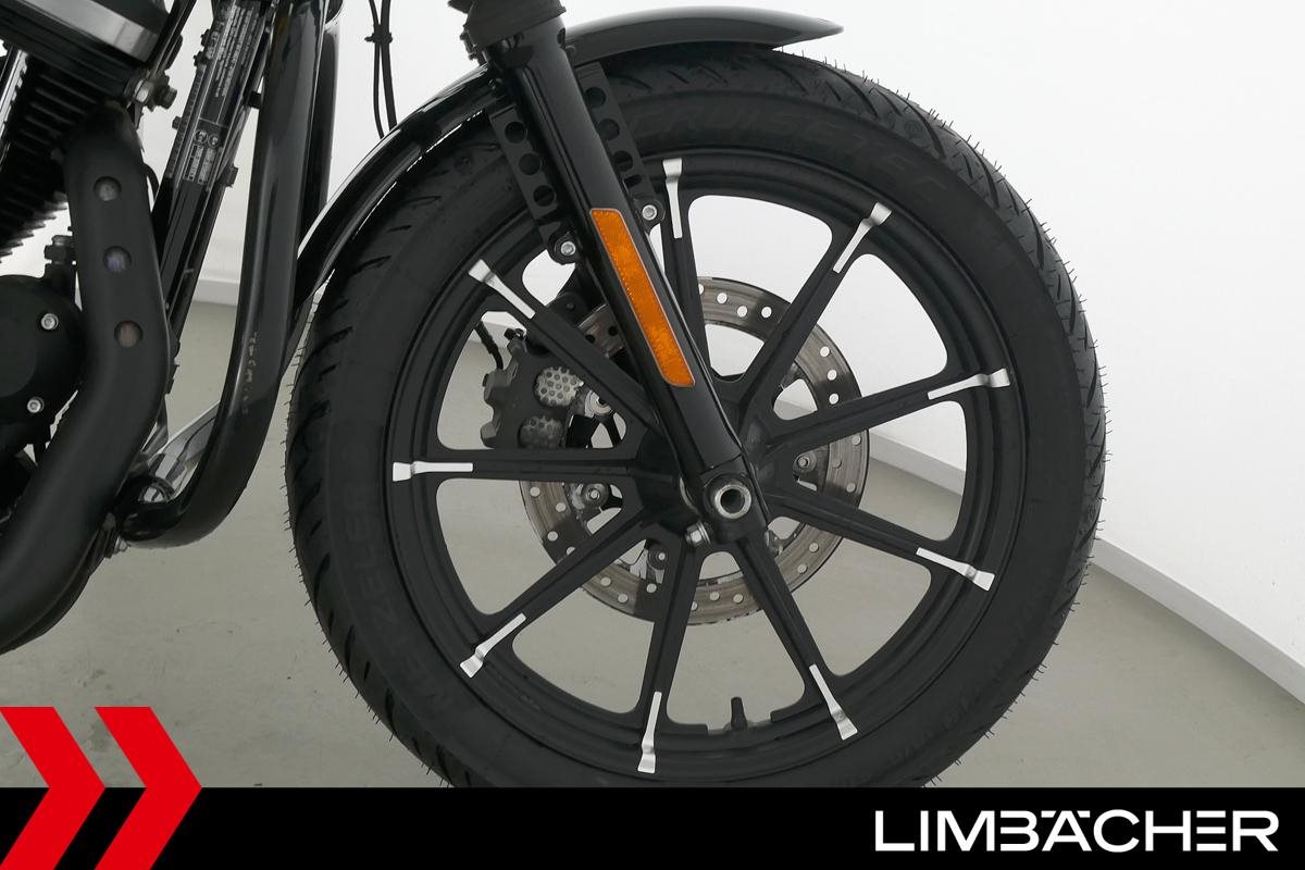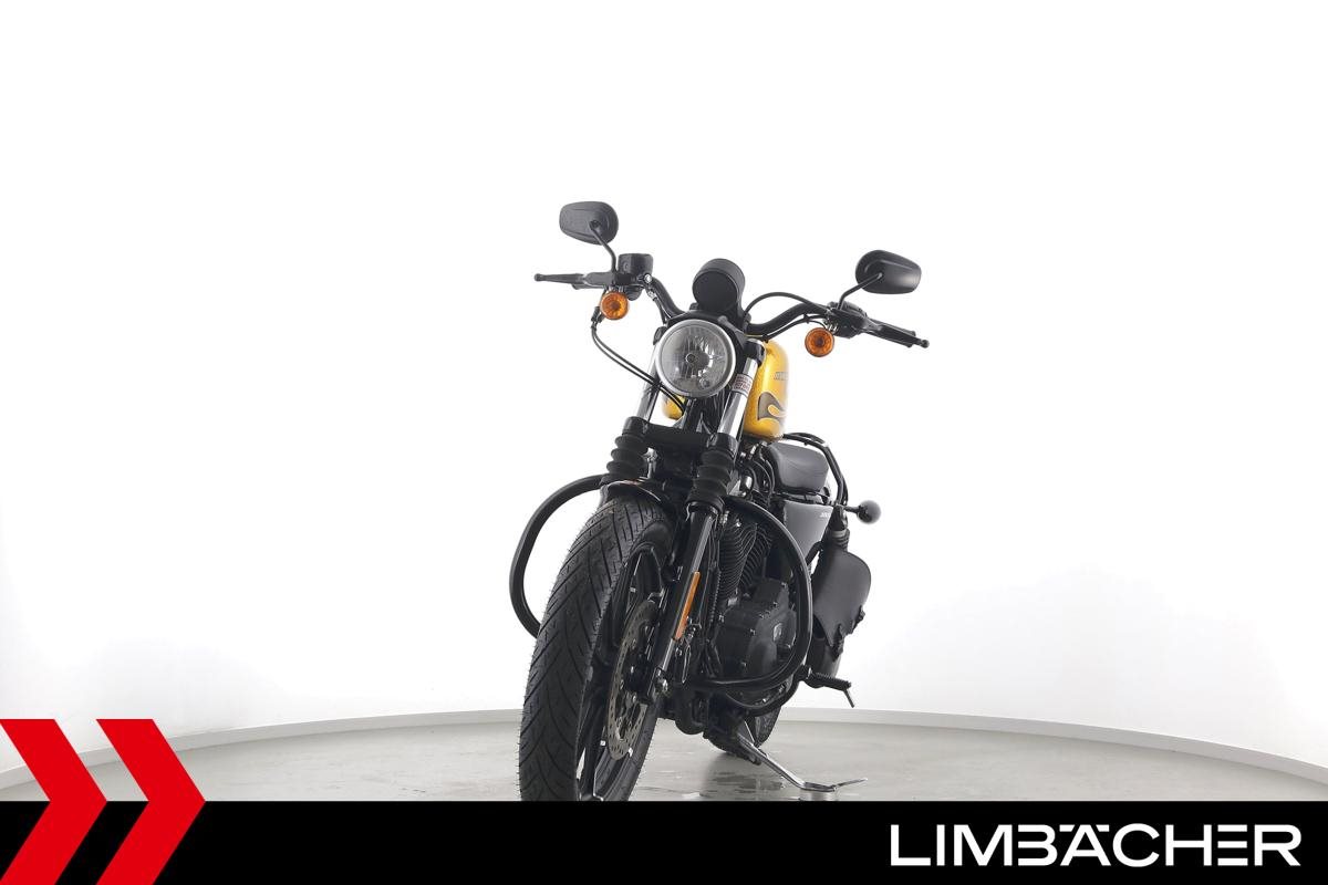 Eine scheckheftgepflegte Harley-Davidson Sportster XL 883 N Iron aus zweiter Hand in sehr gepflegtem Zustand u.a. mit Sturzbügel sowie Leder-Schwingentasche.
