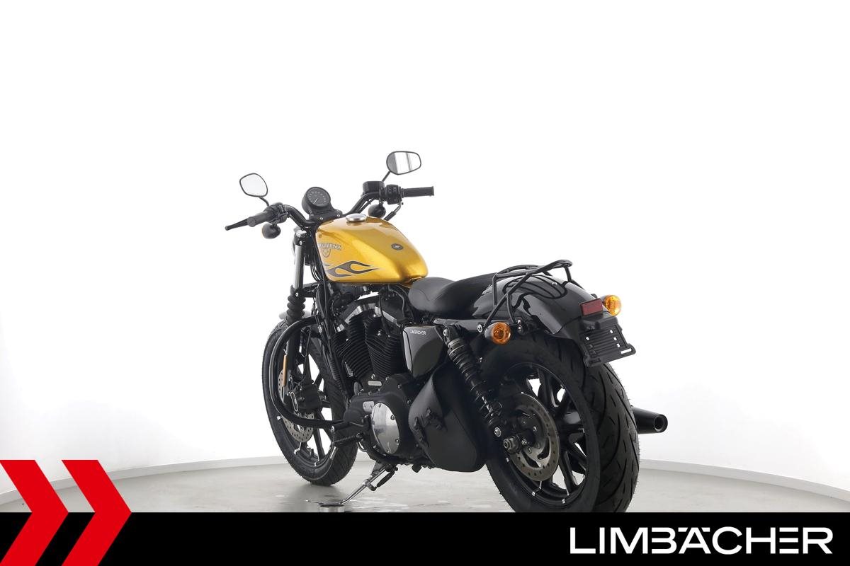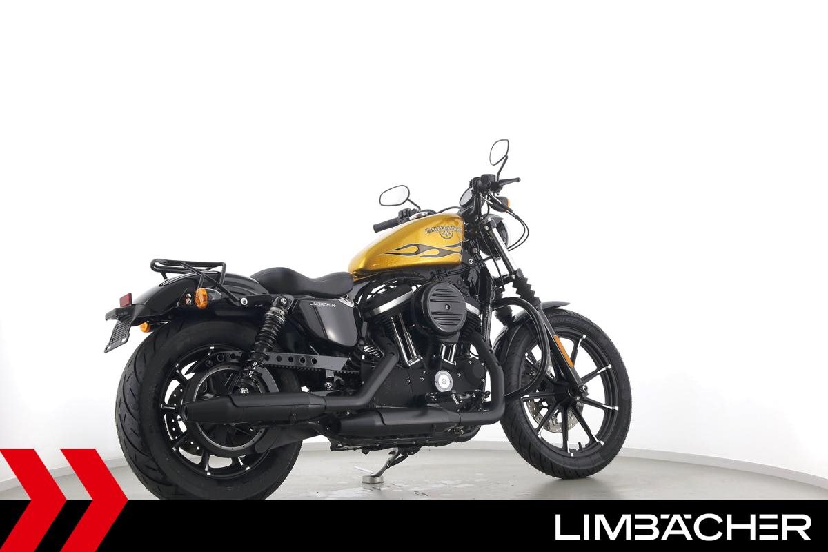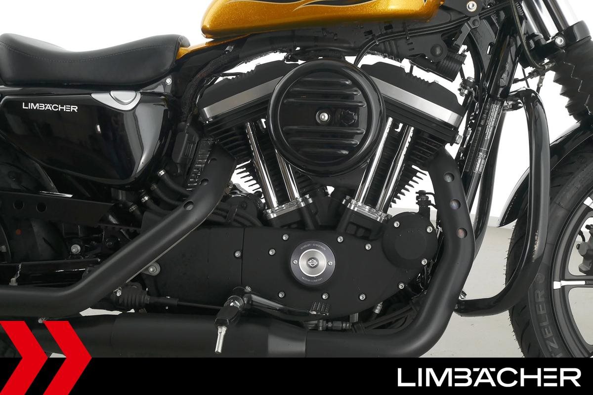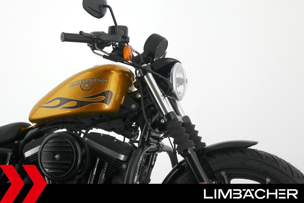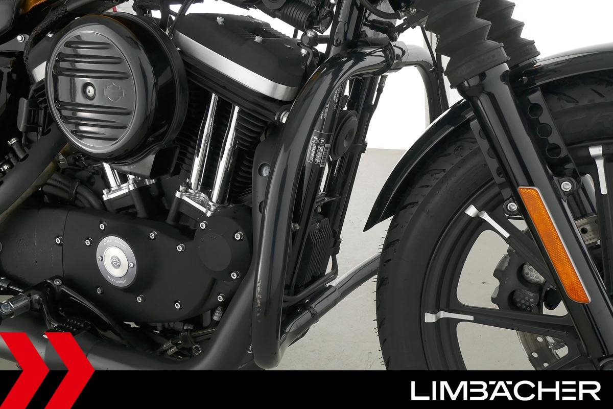 Eine scheckheftgepflegte Harley-Davidson Sportster XL 883 N Iron aus zweiter Hand in sehr gepflegtem Zustand u.a. mit Sturzbügel sowie Leder-Schwingentasche.