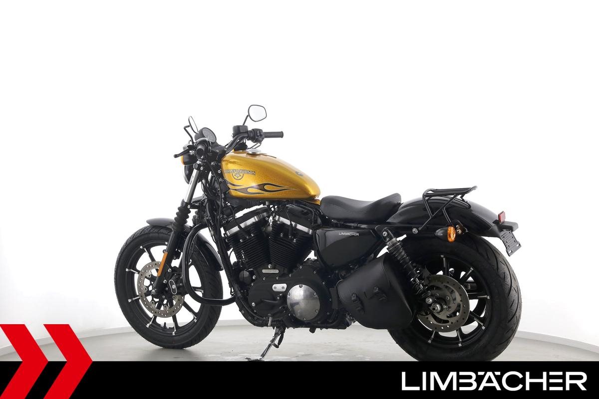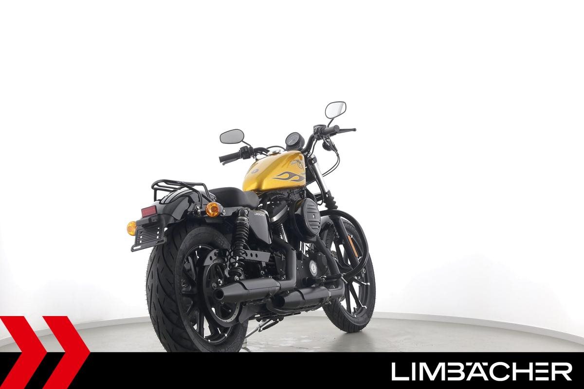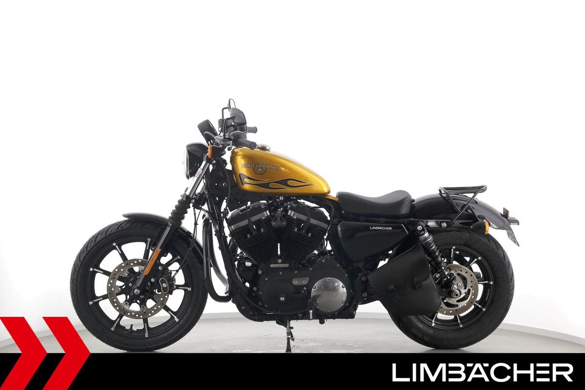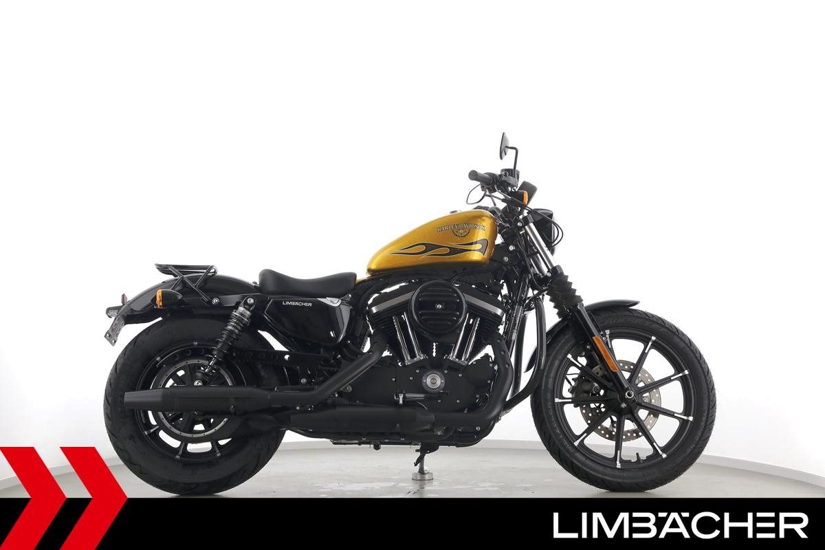 Eine scheckheftgepflegte Harley-Davidson Sportster XL 883 N Iron aus zweiter Hand in sehr gepflegtem Zustand u.a. mit Sturzbügel sowie Leder-Schwingentasche.