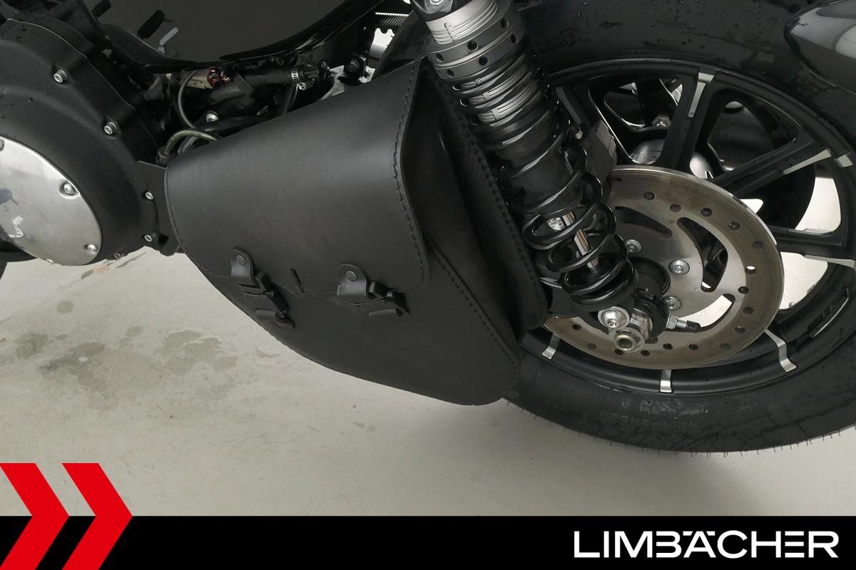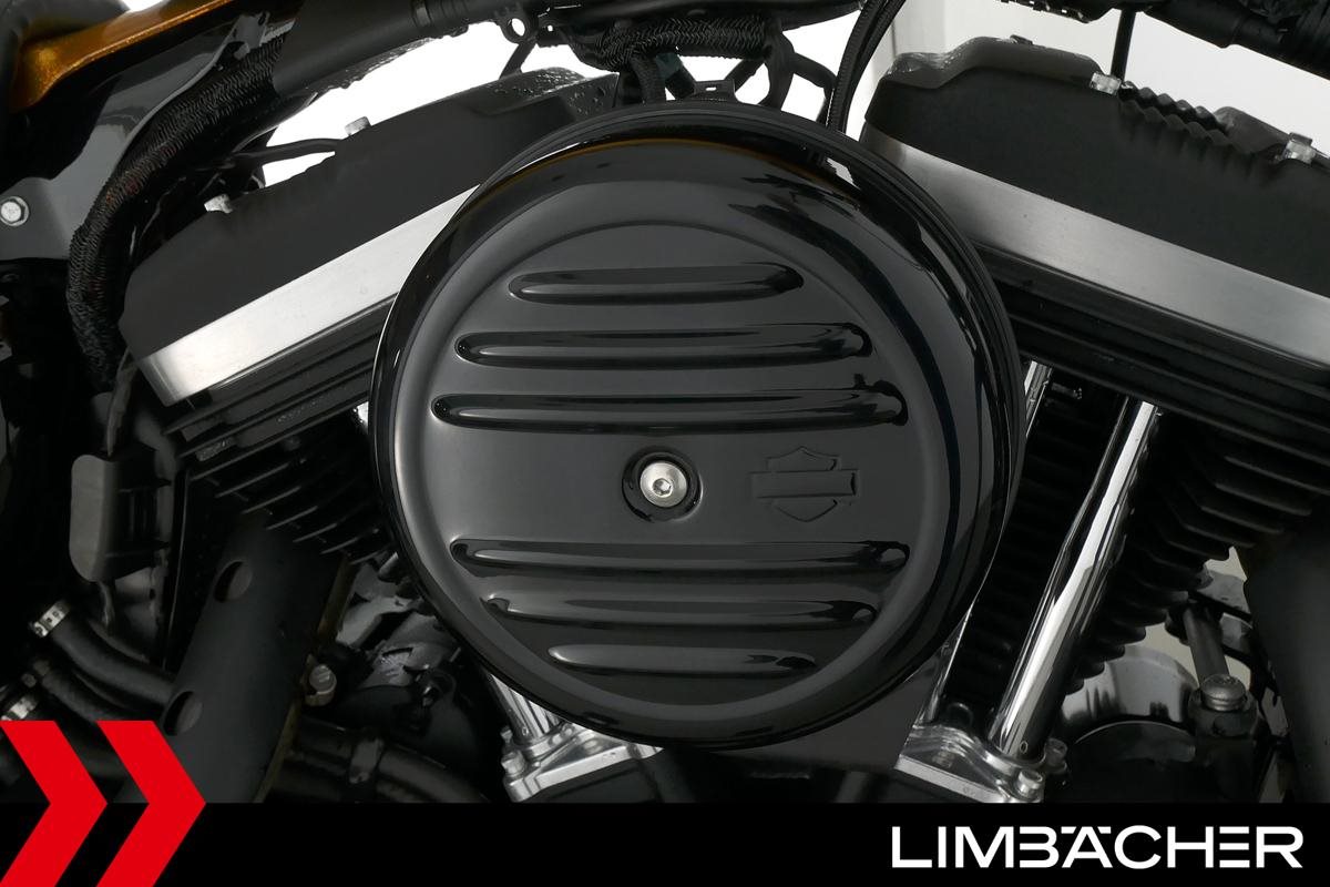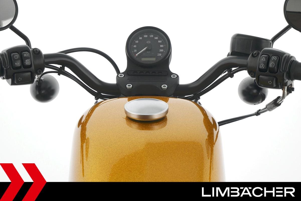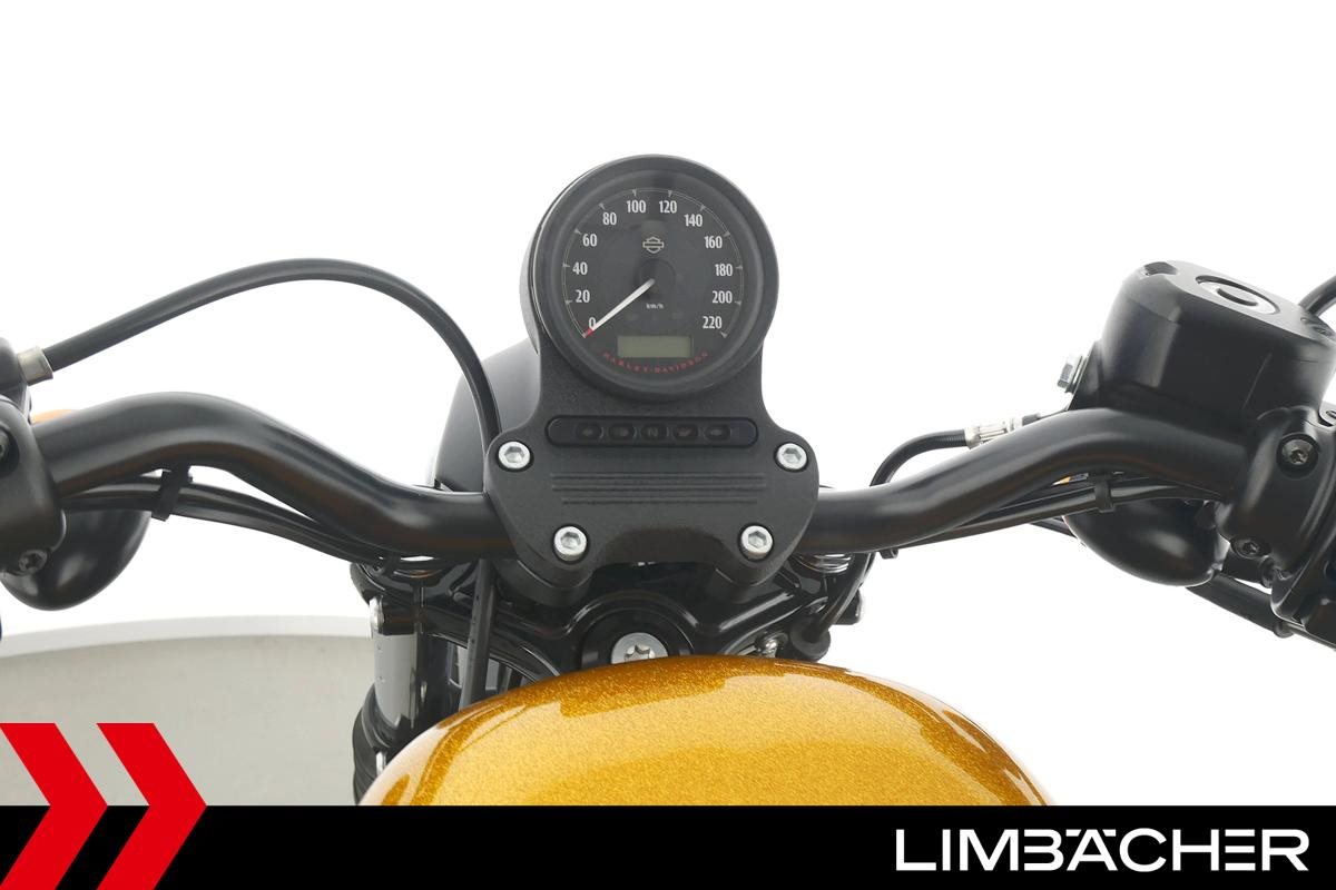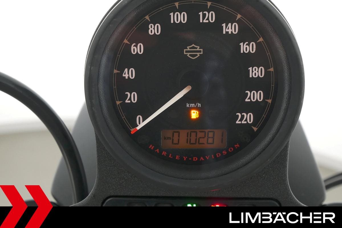 Eine scheckheftgepflegte Harley-Davidson Sportster XL 883 N Iron aus zweiter Hand in sehr gepflegtem Zustand u.a. mit Sturzbügel sowie Leder-Schwingentasche.