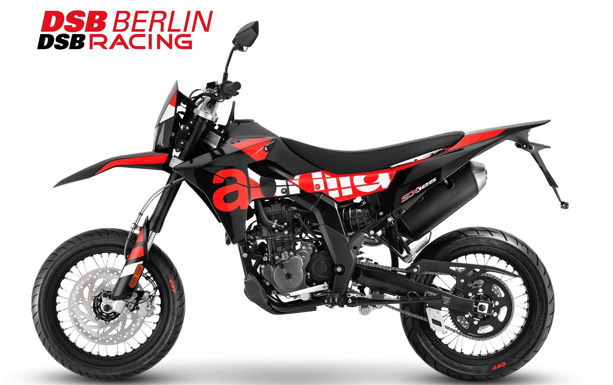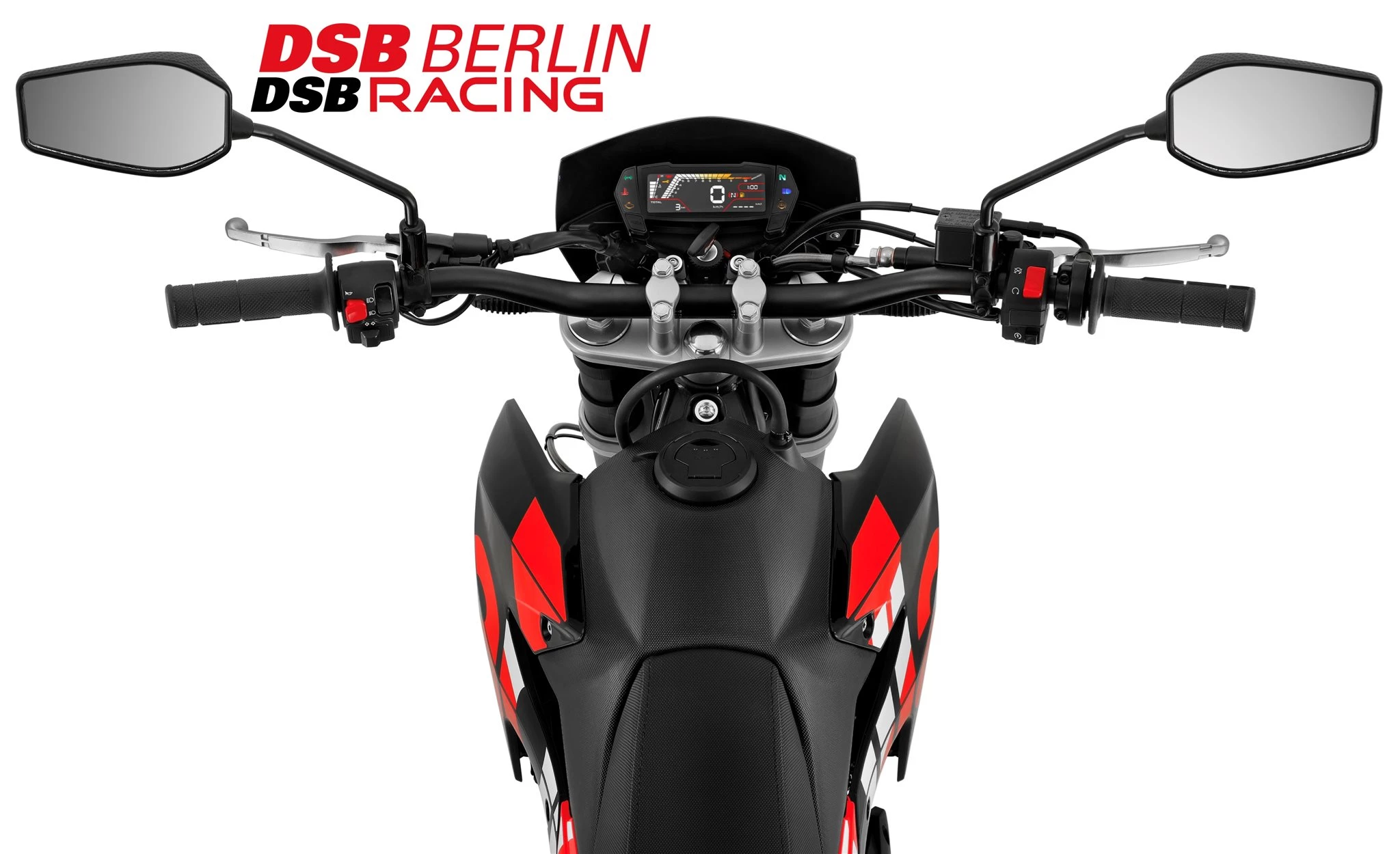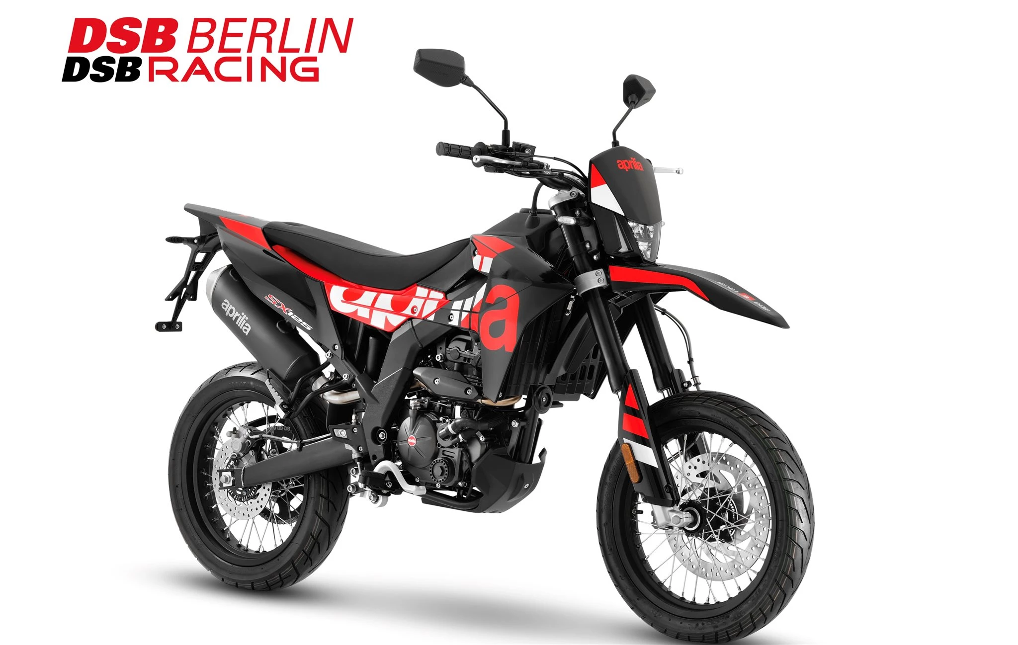 Cooler Look und Feeling im Supermoto-Style ist mit der SX 125 angesagt. Extrem handlich und agil setzt sich die aprilia SX 125 mit 17 Zoll Speichenrädern im Supermoto-Style in Szene. Mit ihrem neuem Euro 5+-Motor, optimiertem Drehmoment und neuem Design ist die SX 125 für Ihren ganz individuellen Auftritt in der Szene bestens gerüstet. In einem Top-Fahrwerk verbaute aprilia als erster Hersteller im Supermoto-Segment ein Bosch 1-Kanal-ABS und RLM - Stoppie Control - die bei harten Bremsmanövern mit der ABS-geregelten Vorderradbremse ein Abheben des ABS-freien Hinterrades auf ein Minimum reduziert.