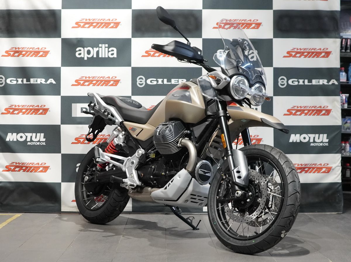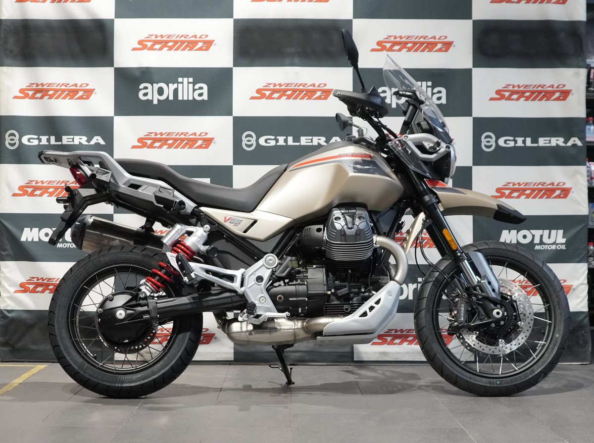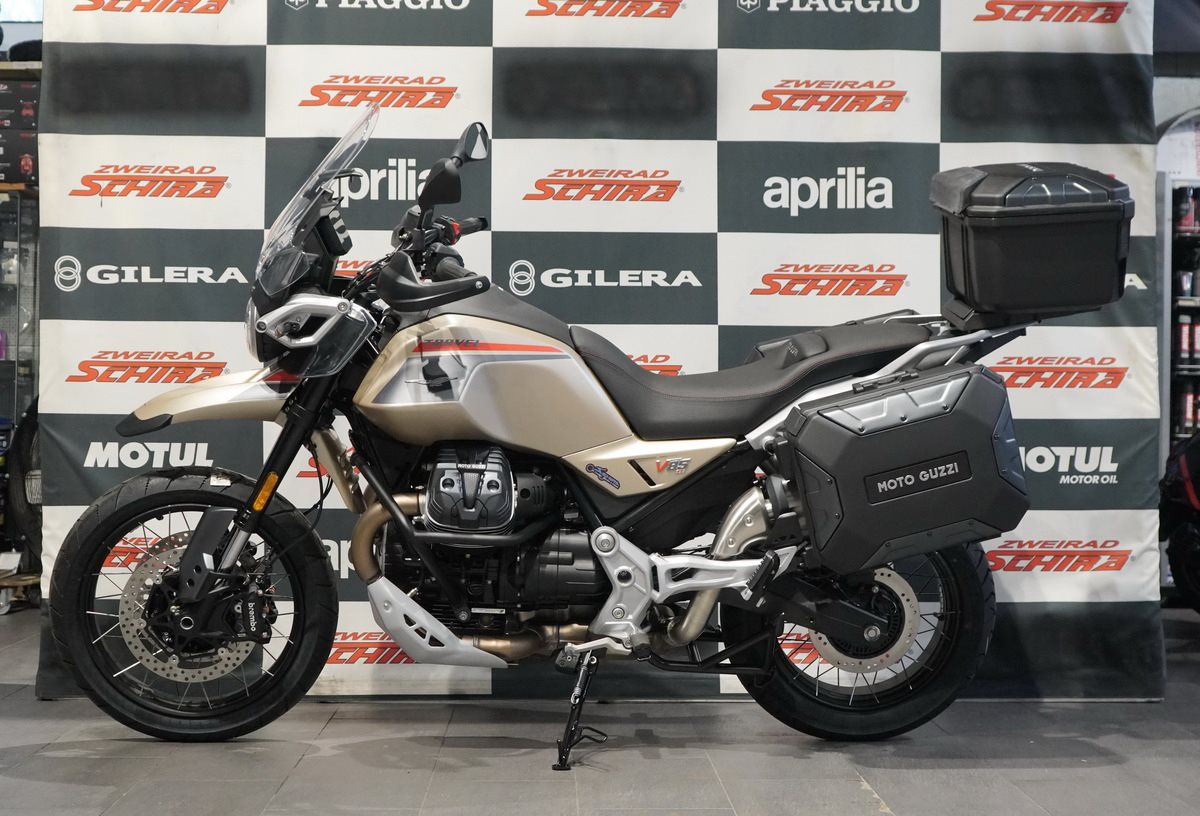 Die Moto Guzzi V85 TT Travel ist ein unerschrockener Entdecker, der keinen Hehl daraus macht, dass er jeden Moment im Sattel zu einer tollen Reise machen will. Die serienmäßige Komplettausstattung macht das deutlich, vom schützenden Touring-Windschild über die Sitzheizung und Heizgriffe bis hin zu den stabilen Seitenkoffern mit ihrem großzügigen Fassungsvermögen. Ein umfangreiches Elektronik- und Multimediapaket erhöht nicht nur die Sicherheit und den Fahrspaß, sondern unterstreicht auch die Langstreckentauglichkeit dieses Motorrads. Egal, wie weit das Ziel entfernt ist, Hauptsache der Weg dorthin macht Spaß.