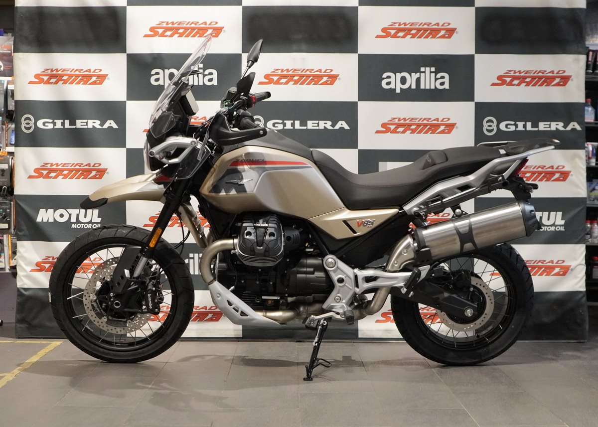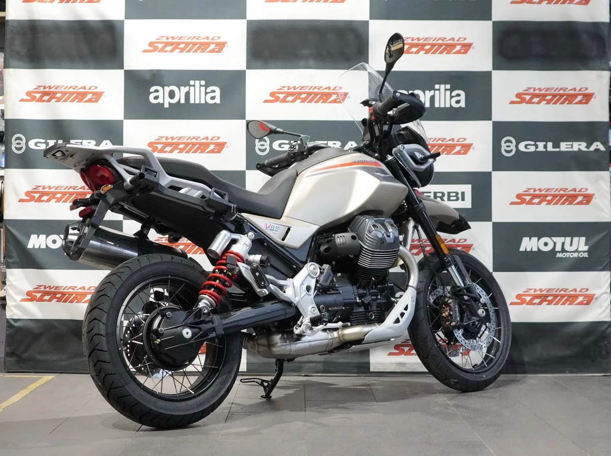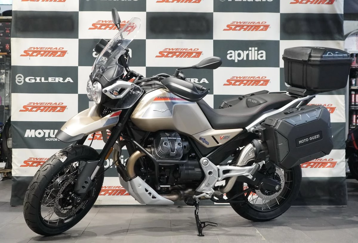 Die Moto Guzzi V85 TT Travel ist ein unerschrockener Entdecker, der keinen Hehl daraus macht, dass er jeden Moment im Sattel zu einer tollen Reise machen will. Die serienmäßige Komplettausstattung macht das deutlich, vom schützenden Touring-Windschild über die Sitzheizung und Heizgriffe bis hin zu den stabilen Seitenkoffern mit ihrem großzügigen Fassungsvermögen. Ein umfangreiches Elektronik- und Multimediapaket erhöht nicht nur die Sicherheit und den Fahrspaß, sondern unterstreicht auch die Langstreckentauglichkeit dieses Motorrads. Egal, wie weit das Ziel entfernt ist, Hauptsache der Weg dorthin macht Spaß.