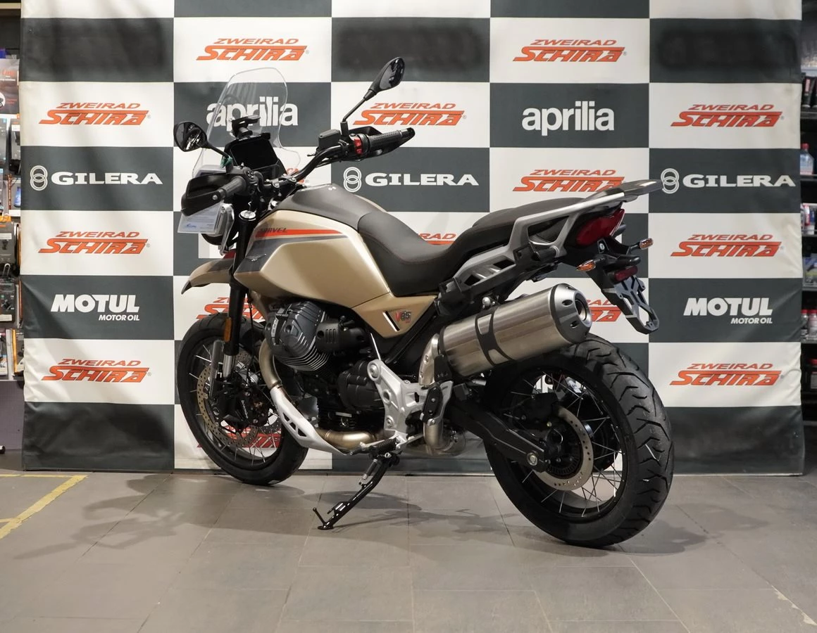 Die Moto Guzzi V85 TT Travel ist mit einer 6-achsigen Inertia-Plattform mit Kurven-ABS und Cruise Control ausgestattet. Ebenfalls integriert ist Moto Guzzi MIA, das Multimediasystem, das Ihr Smartphone mit dem Motorrad verbindet und die Funktionen des TFT-Displays erweitert. Es aktiviert auch den Custom-Fahrmodus, der die bestehenden Einstellungen Road, Sport, Rain und Offroad um eine fünfte Option ergänzt. Dieser Modus ist nur bei der V85 TT Travel serienmäßig und ermöglicht dem Fahrer die Einstellung von Leistungsabgabe, Traktionskontrolle und ABS.