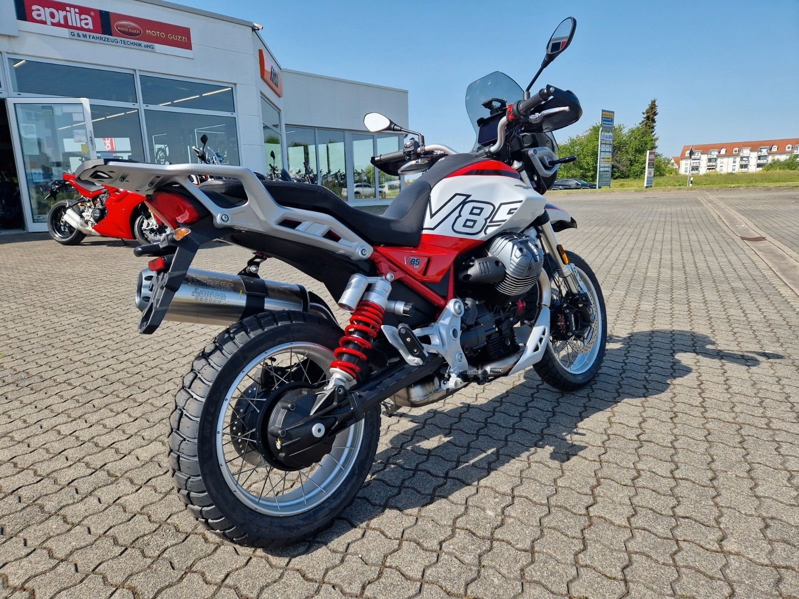die neuen Moto Guzzi V 85 TT E5+ jetzt verfügbar vom Moto Guzzi Vertragshändler, Neufahrzeug ohne Zulassung zum Barpreis.