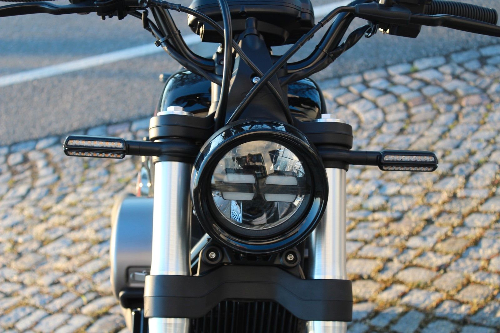 - LED Scheinwerfer, LED Blinker, 2 Zylinder V-Motor, Wasserkühlung, ABS, Upside-Down-Gabel