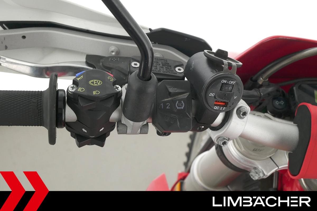 Eine GasGas GG4T/EC350F aus erster Hand in gebrauchtem Zustand u.a. mit Traktionskontrolle mehrstufig sowie Kellermann-Micro-LED-Blinkern.