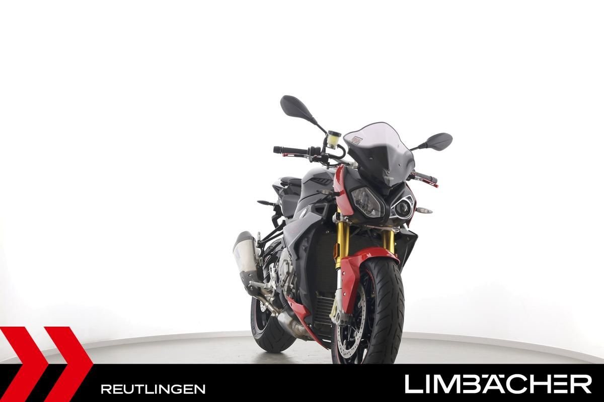 Eine scheckheftgepflegte BMW S 1000 R aus zweiter Hand in gepflegtem Zustand u.a. mit Akrapovic-Endschalldämpfer sowie VTrec-Brems- und -Kupplungshebel.