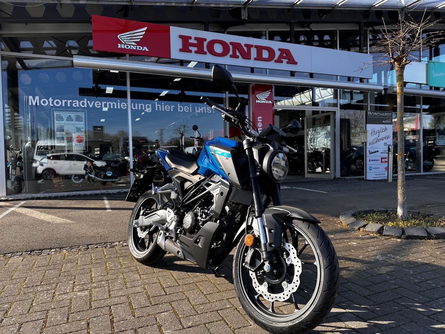 ls Teil der Neo Sports Café-Produktreihe setzt die kleine Schwester der CB1000R ein klares Zeichen. Die aktualisierte CB125R zeichnet sich durch ein kühnes Design mit modernen Merkmalen aus. Der Stahlrohrrahmen und der runde Scheinwerfer mit der markanten Einfassung vervollständigen ein unverwechselbares Profil. Gemeinsam mit der LED-Beleuchtung und dem 5-Zoll TFT-Farbdisplay verleiht dies der CB125R eine gewisse Raffinesse.Was aber wirklich auffällt, ist die geballte Leistung des 125er DOHC-Motors. Die Präzision der Showa SFF-BP USD-Federgabeln sorgt für ein sanfteres Fahrverhalten und ein angenehmeres Fahrgefühl, selbst auf holprigen Straßen.