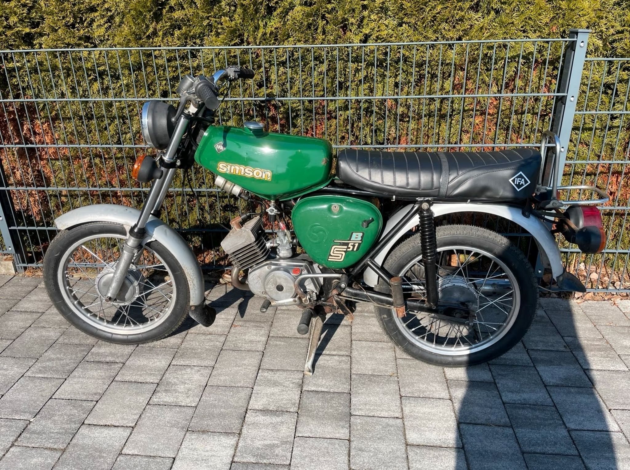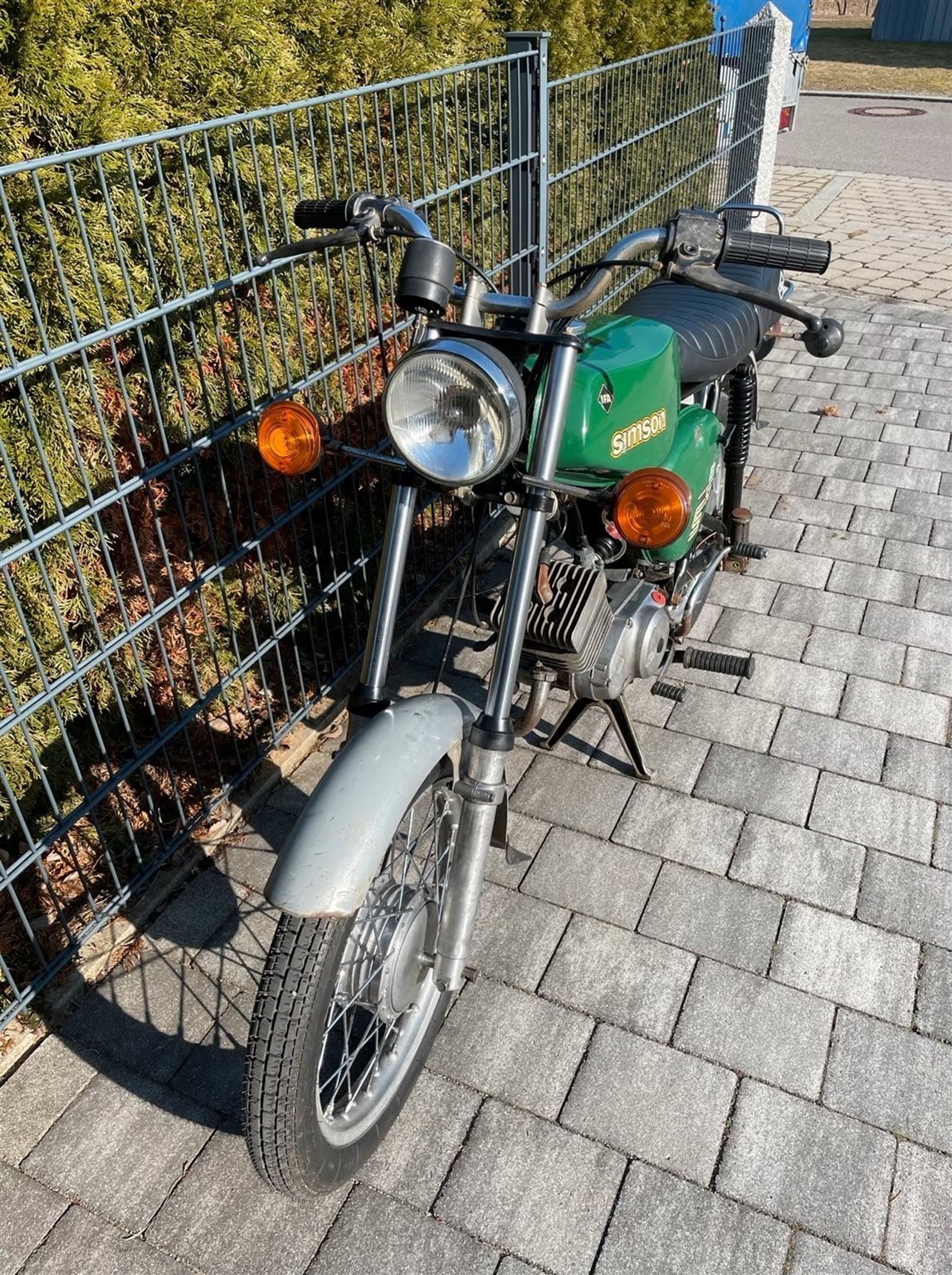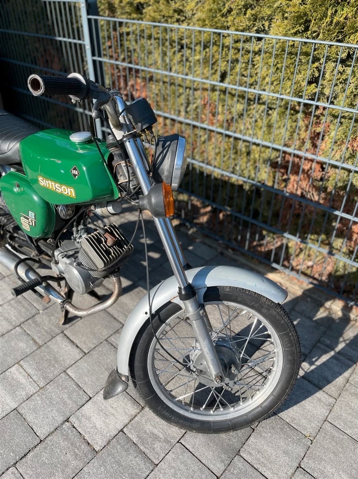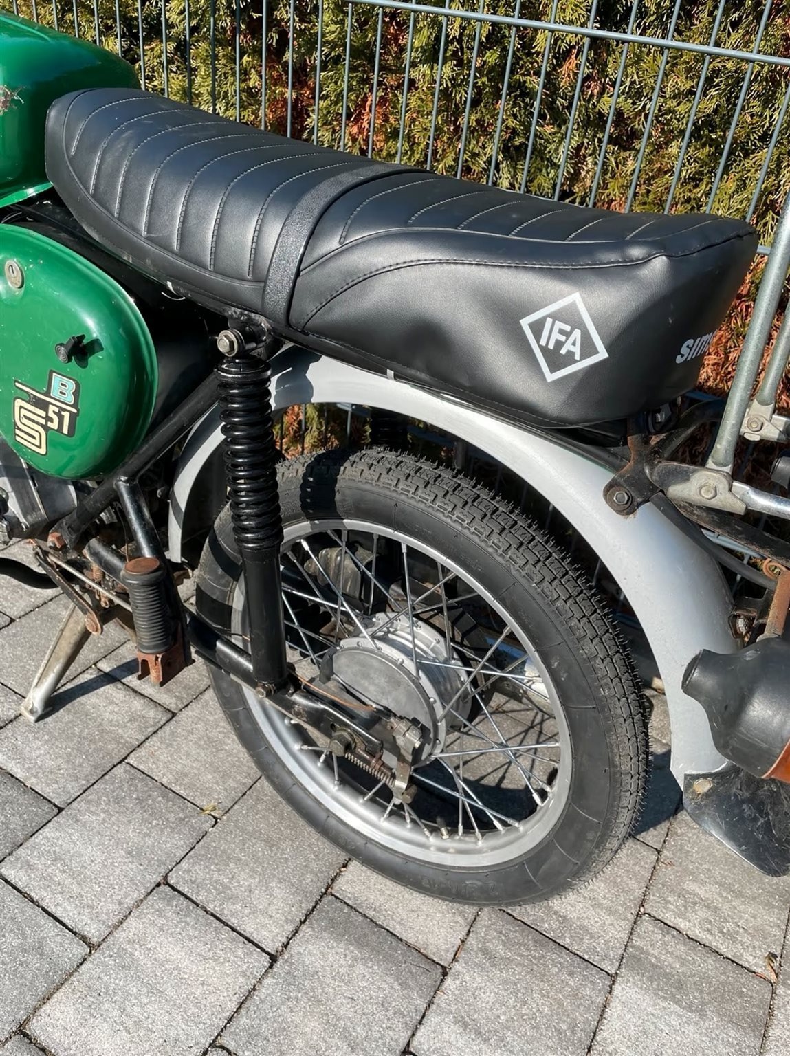 Sitzbezug (originaler ist drunter) Bremsklötze vorn und hinten sind neu, Feder und Simmeringe in der Telegabel sind neu, da die Simmeringe undicht waren, die Batterie und Hupe sind auch neu. Die Räder sind Original nur die Reifen sind neu. Wie zu sehen, hat das Moped eine tolle Patina und läuft einwandfrei. Werkzeug, Lampenkasten sind enthalten!