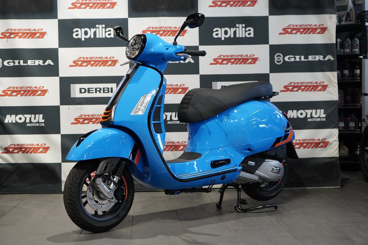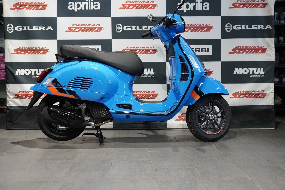 Die Vespa Gts SuperSport besticht durch ihre glänzenden und matten Farben, die durch Details im Carbon-Look und glänzend schwarze Zierleisten ergänzt werden. Die Sitzbank mit hochwertigen Materialien und Kontrastnähten unterstreicht ihren starken Charakter. Mit der Vespa Gts SuperSport wird jeder Tag zu einem aufregenden Abenteuer.