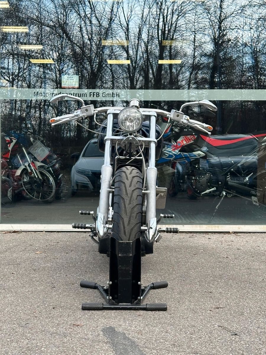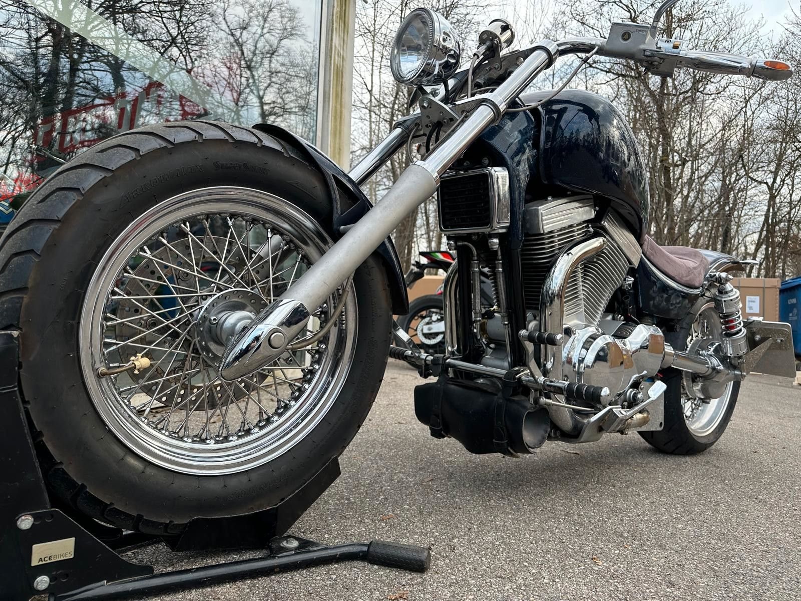 Wir bieten eine stark umgebaute Suzuki VS1400 aus dem Jahr 1993 zum Verkauf an. Dieses Motorrad ist ein echter Hingucker und wurde mit viel Liebe zum Detail modifiziert. Es bietet eine einzigartige Optik und ein kraftvolles Fahrerlebnis.