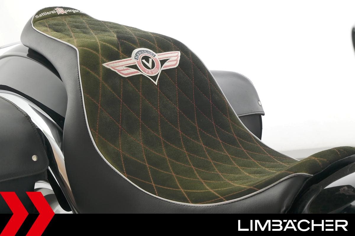 Eine Kawasaki VN 900 Custom in sehr gepflegtem Zustand u.a. mit Leder-Satteltaschen und Sondersitzbank.