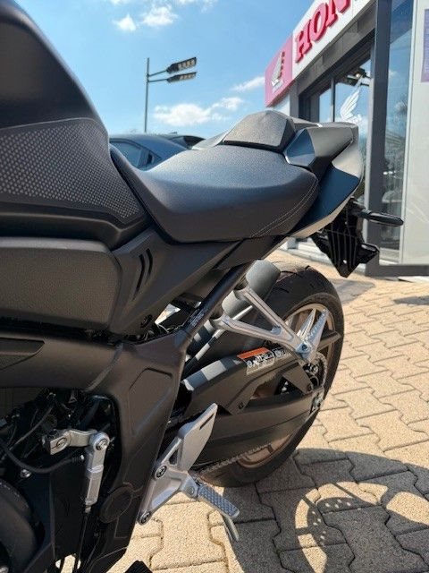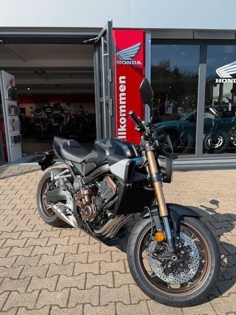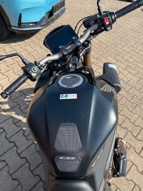 Die CB650R gefällt mit schlankem, stromlinienförmigem Design. Der ultrakompakte, kraft- volle Style zitiert den Retro-Minimalismus der CB1000R Neo Sports Café: geschwungene Linien mit klar definierten Kanten, markanten Seitenverkleidungen und einer eleganten Kenn- zeichenhalterung.Gebaut, um gefahren zu werden. Der DOHC-Vierzylinder-Reihenmotor mit 16 Ventilen, das kurz übersetzte Getriebe und die gleichmäßige Leistungsentfaltung begeistern mit überra- gender Beschleunigung - dazu der charakteristische Sound im hohen Drehzahlbereich, der süchtig macht. Als dezente Reminiszenz an die Vierzylinder-Geschichte von Honda verlaufen die vier Auspuffrohre parallel um die Vorderseite des Motors herum. Eine Anti-Hopping-Kupp- lung erleichtert kontrolliertes Hochschalten und auch harte Gangwechsel. Die Honda Selec- table Torque Control (HSTC) gewährleistet perfekte Traktion am Hinterrad. Honda Händler können den Motor gemäß Anforderungen für den A2-Führerschein problemlos auf 35 kW (48 PS) drosseln. Die Rückrüstung auf die volle Leistung ist ebenso einfach.Die einstellbare 41-mm-USD-Gabel von SHOWA in SFF-BP-Ausführung (Big Piston mit Separate Fork Function) spricht sanft an und vermittelt ein hervorragendes Gefühl für das Vorderrad. Das Fahrwerk ist perfekt mit dem steifen Rahmen und der agilen Geometrie der CB650R ausbalanciert. Reifen mit den Abmessungen 120/70-17 vorn und 180/55-17 hinten bieten Grip auf Superbike-Niveau. Die Voll-LED-Beleuchtung unterstreicht das hochwertige, zeitlose Styling. Markante Doppelscheinwerfer leuchten jede Kurve perfekt aus. Die leicht ablesbare LCD-Instrumententafel informiert über gewählten Gang und Schaltpunkt. Zusätzli- che Sichtbarkeit bringt die Notstopp-Signalfunktion ESS: Abrupte Bremsmanöver aktivieren automatisch die Warnblinkanlage vorn und hinten, um andere Verkehrsteilnehmer zu warnen.
