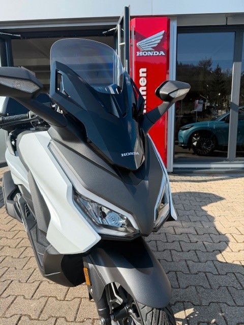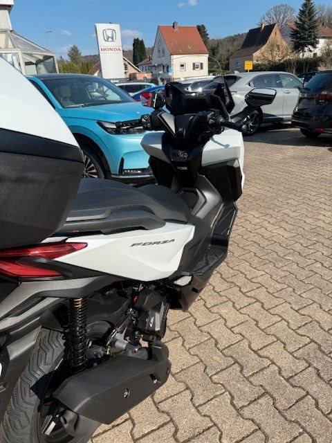 Seit seinem Debüt 2015 ist der Forza 125 dank kompakter Abmessungen und hervorragender Motorleistung führend in seiner Klasse. Dieser Roller gleitet mit Leichtigkeit durch die Stadt und ist mit Premiumtechnologie ausgestattet, die Fahrgefühl und Alltagskomfort weiter voranbringt. Front- und Seitenverkleidung sind besonders auf Aerodynamik getrimmt und optimieren den Fahrtwind auch bei höherer Geschwindigkeit. Der elektrische Flyscreen lässt sich um 180 mm verstellen und erzeugt ausgefahren erhöhten Windschutz und weniger Windgeräusche bzw. eingefahren mehr Freiraum in der Stadt. Zum Aufladen eines Mobilgerätes befindet sich im Handschuhfach eine praktische USB-Type-C-Ladebuchse.Der flüssigkeitsgekühlte Vierventilmotor mit enhanced Smart Power Plus (eSP+) erfüllt die Euro-5-Norm und ist mit der Honda Selectable Torque Control (HSTC) ausgestattet, die für die Traktion des Hinterrades zuständig ist. Die Start-Stopp-Automatik steigert die Kraftstoffeffizienz (Reichweite bis zu 487 km / Tankfüllung) und reduziert Emissionen, indem sie den Motor nach drei Sekunden Standzeit abschaltet und mit einem Dreh am Gasgriff wieder startet. Stecken Sie den SMART Key einfach ein. Bei Annäherung an das Fahrzeug schaltet er automatisch die Zündung sowie alle zum System gehörenden Schlösser, z. B. an Lenker, Tankdeckel, Sitzbank oder am SMART Top Case, frei. Der Forza 125 hat ein attraktives neues LCD-Display und Platz für zwei Helme unter dem Sitz. Effiziente Voll-LED- Beleuchtung bedeuten eine deutliche Präsenz auf der Straße und sehr gute Sichtbarkeit.Der Forza 125 fällt überall auf. Falls Sie noch mehr Aufmerksamkeit wollen, sorgt die neue Forza 125 Special Edition - lackiert in Matt Cynos Gray Metallic mit kontrastierenden roten Felgen, roten Akzenten auf dem LCD-Display und Komfort-Sitzbank mit farblich passender Ziernaht und Forza Logo - für ein zusätzliches Maß an sportlicher Attraktivität.