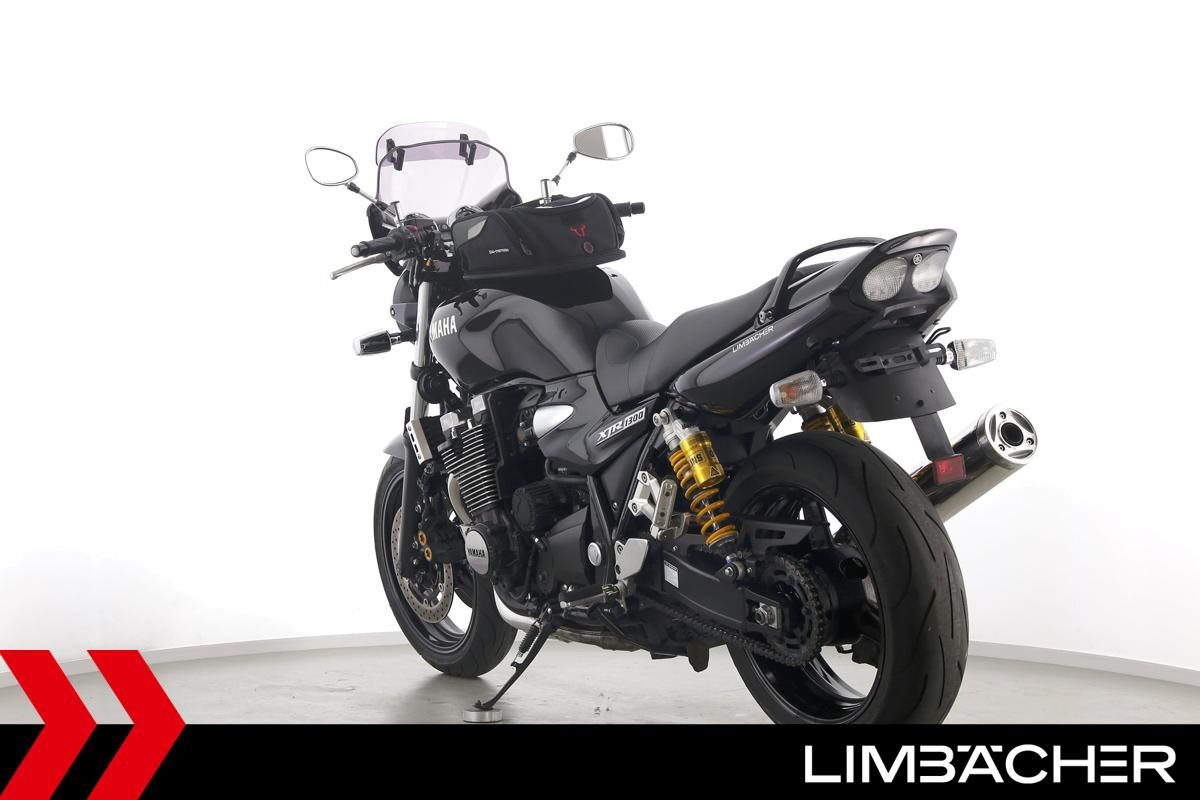 Eine Yamaha XJR 1300 in sehr gepflegtem Zustand u.a. mit MRA-Spoiler-Windschild und Tankrucksack.