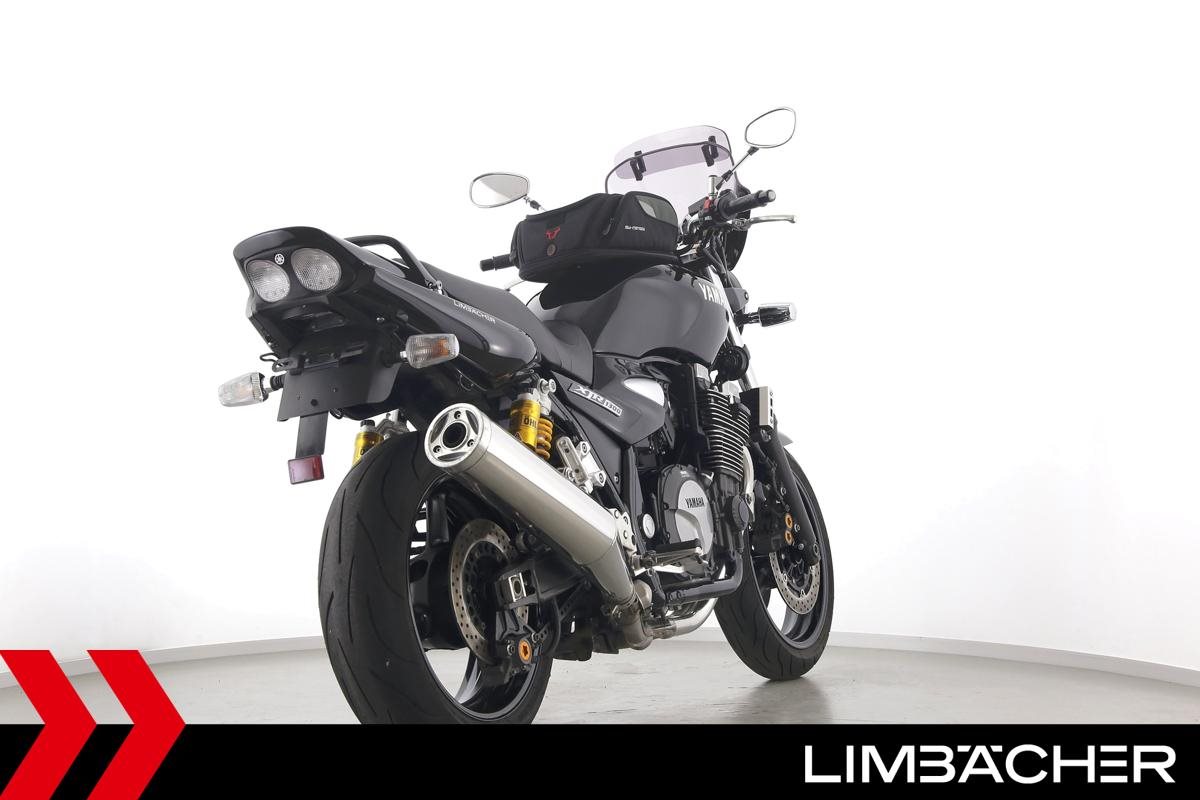 Eine Yamaha XJR 1300 in sehr gepflegtem Zustand u.a. mit MRA-Spoiler-Windschild und Tankrucksack.