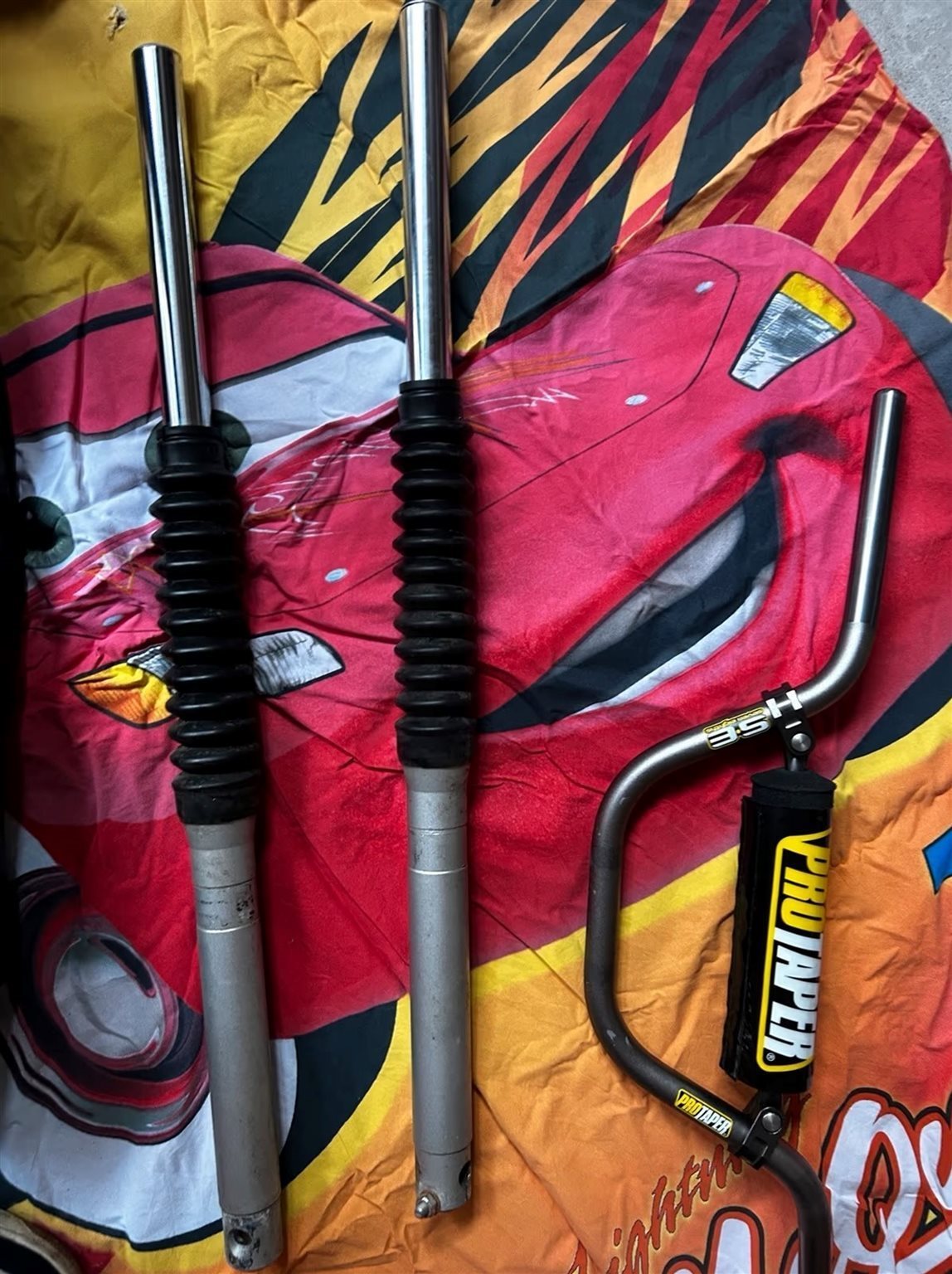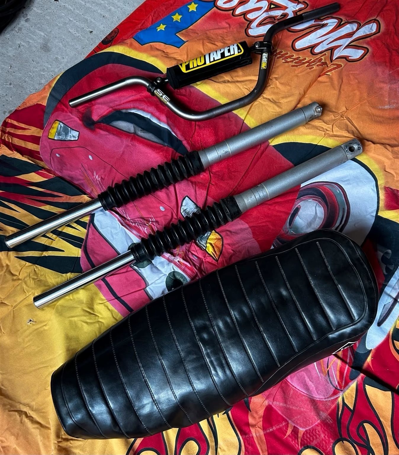verkaufe eine Simson S51B+einen Protaper Lenker,Sr50 Gabel, Originale Sitzbank und ein grünes Tankset.