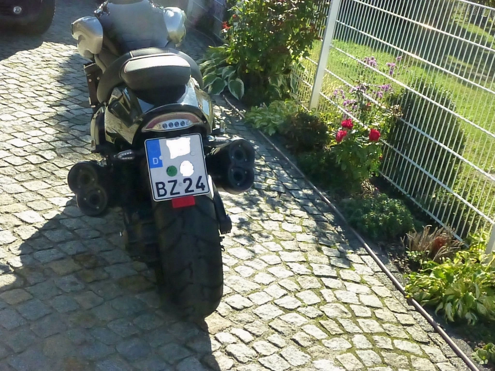 Die Maschine hat zusätzliche Teile erhalten LED-Blinker und Rücklicht, kleiner Kennzeichenhalter, Deckel Kupplung, Deckel Lichtmaschine, Deckel Nockenwellen und Scheibenbremse hinten alles von der Firma März.