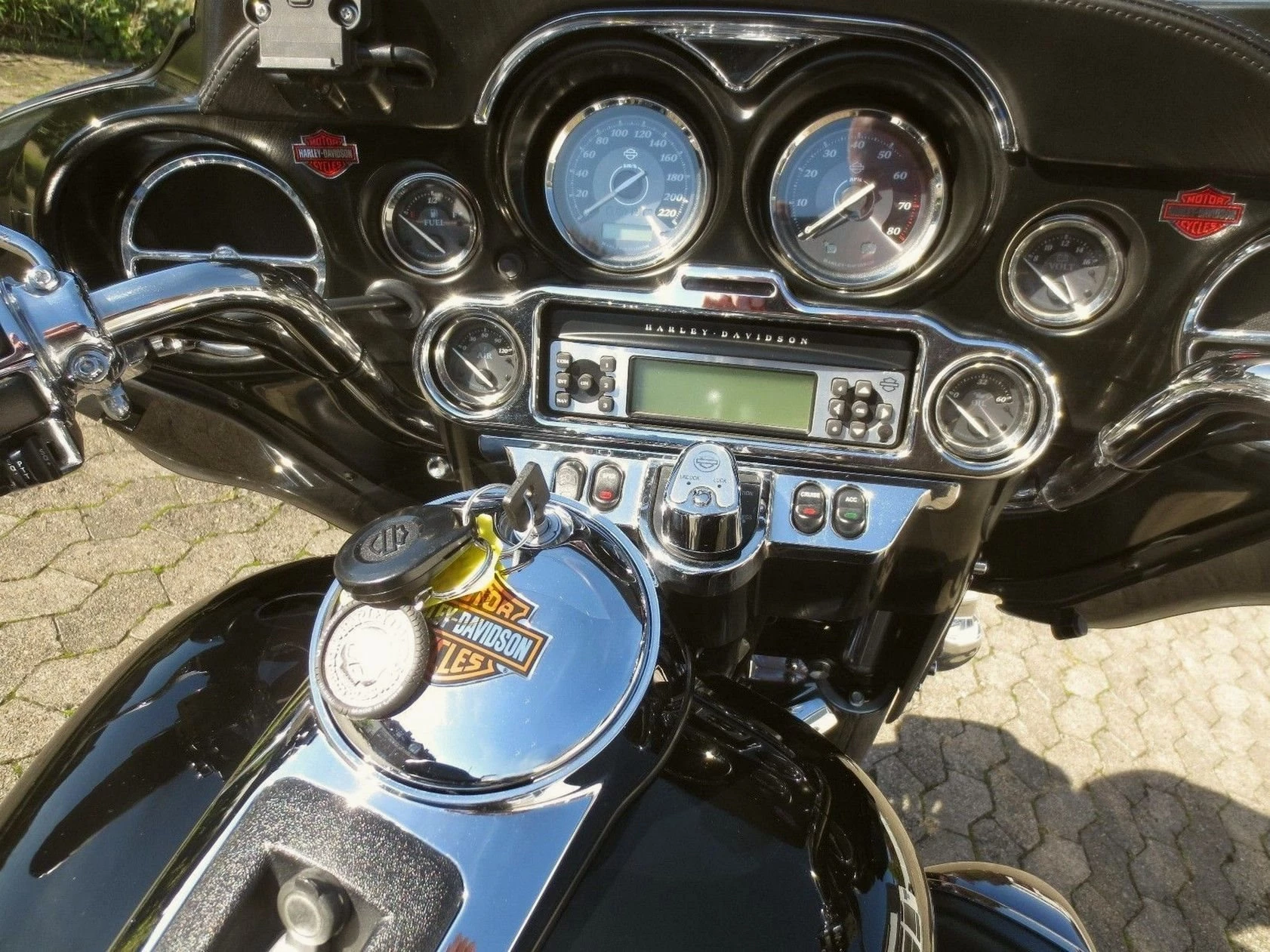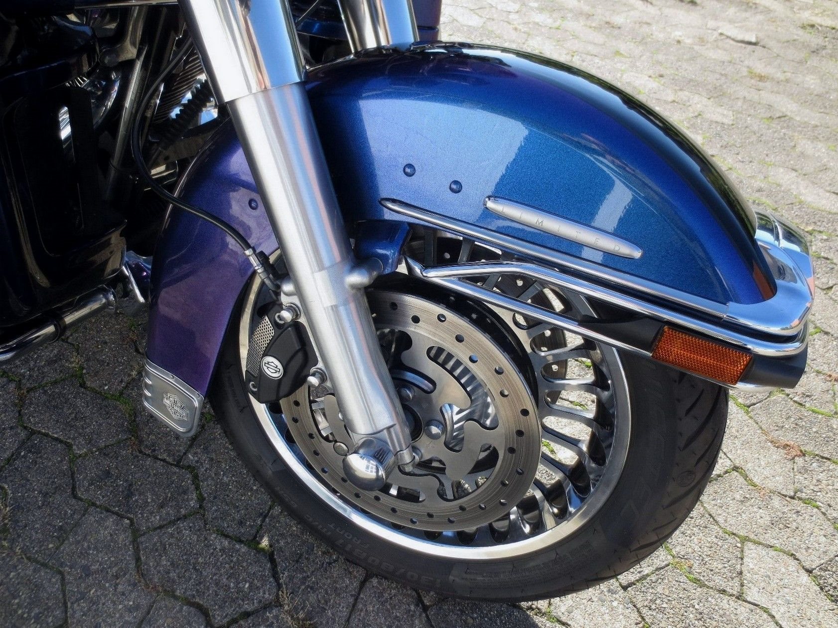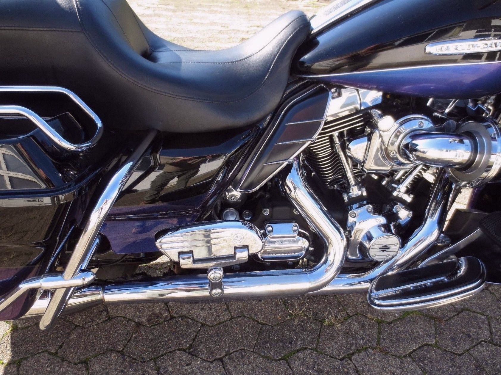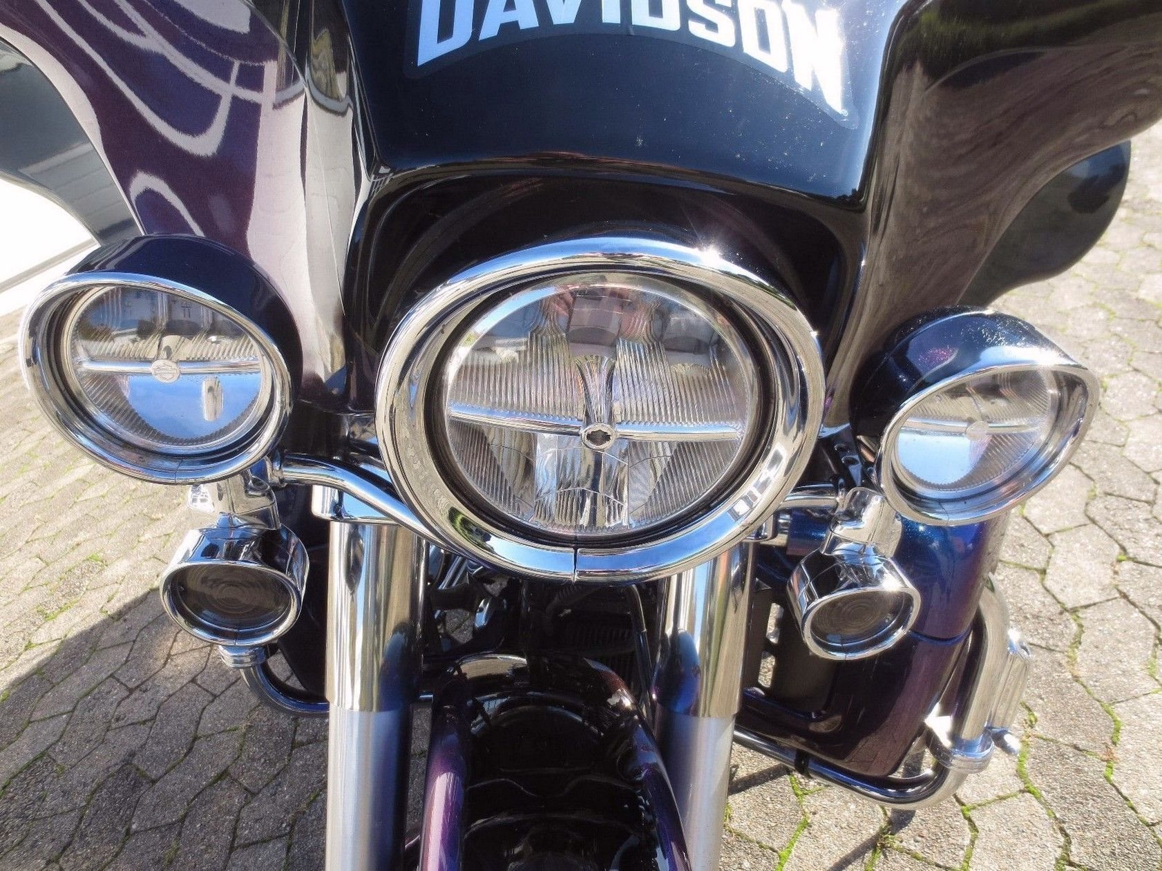 Super gepflegte E-Glide Ultra Limited in schwarz/blau an. Metallic-Lackierung, die im Sonnnlicht changiert über verschiedene Blau- und Violett-Töne. Der Vorbesitzer und ich haben dieses Motorrad mit allem ausgestattet, was Harley an Zubehör zu bieten hat, u.a.: