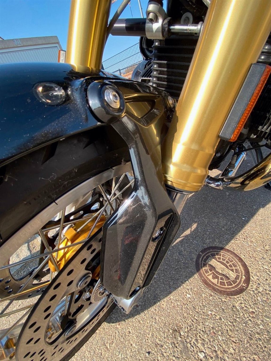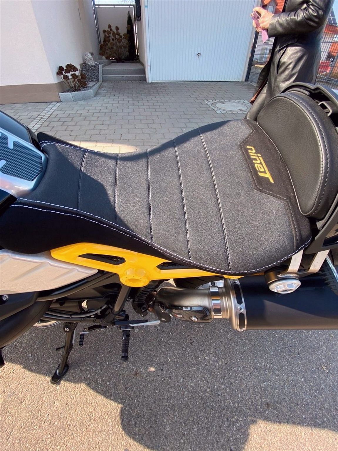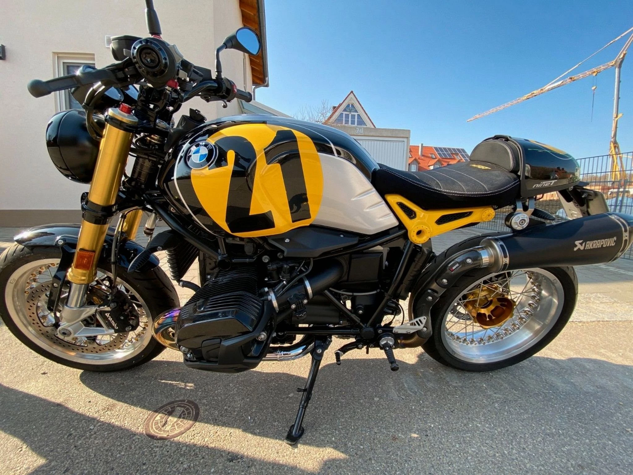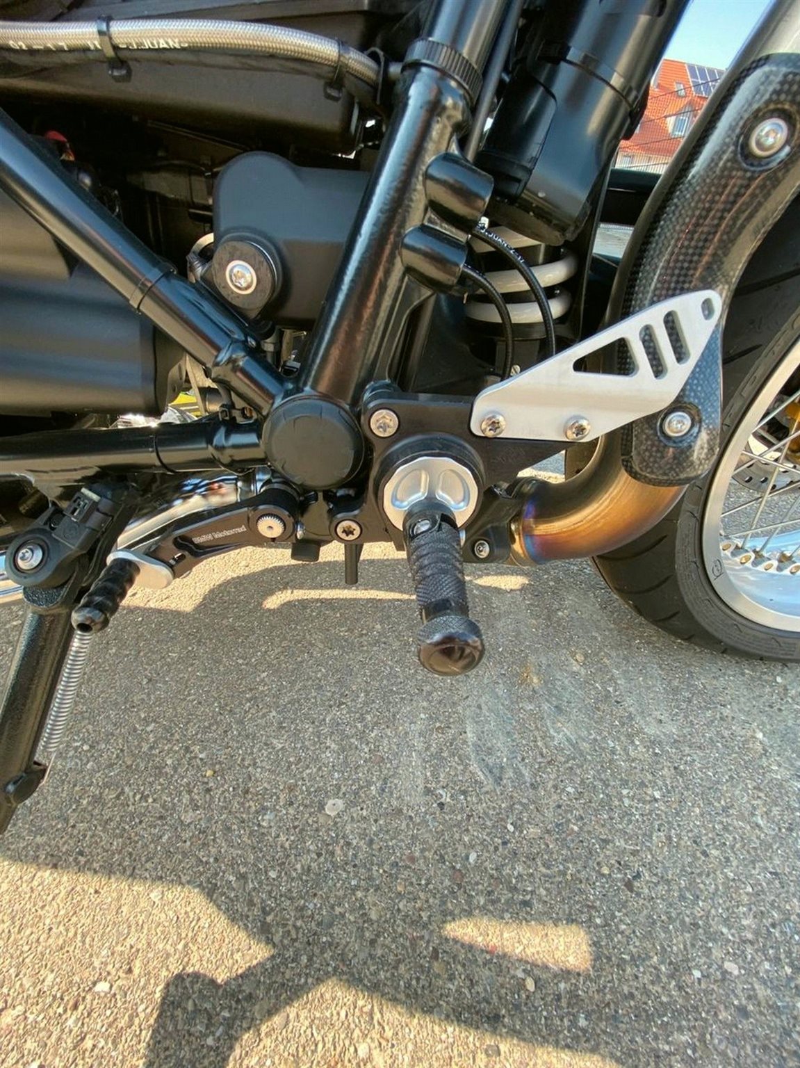 Es wurden andere Speichenfelgen verbaut, andere Fußrasteranlage, Sitzbank wurde neu überzogen und auch weicher gemacht, Akrapovic Auspuffanlage.