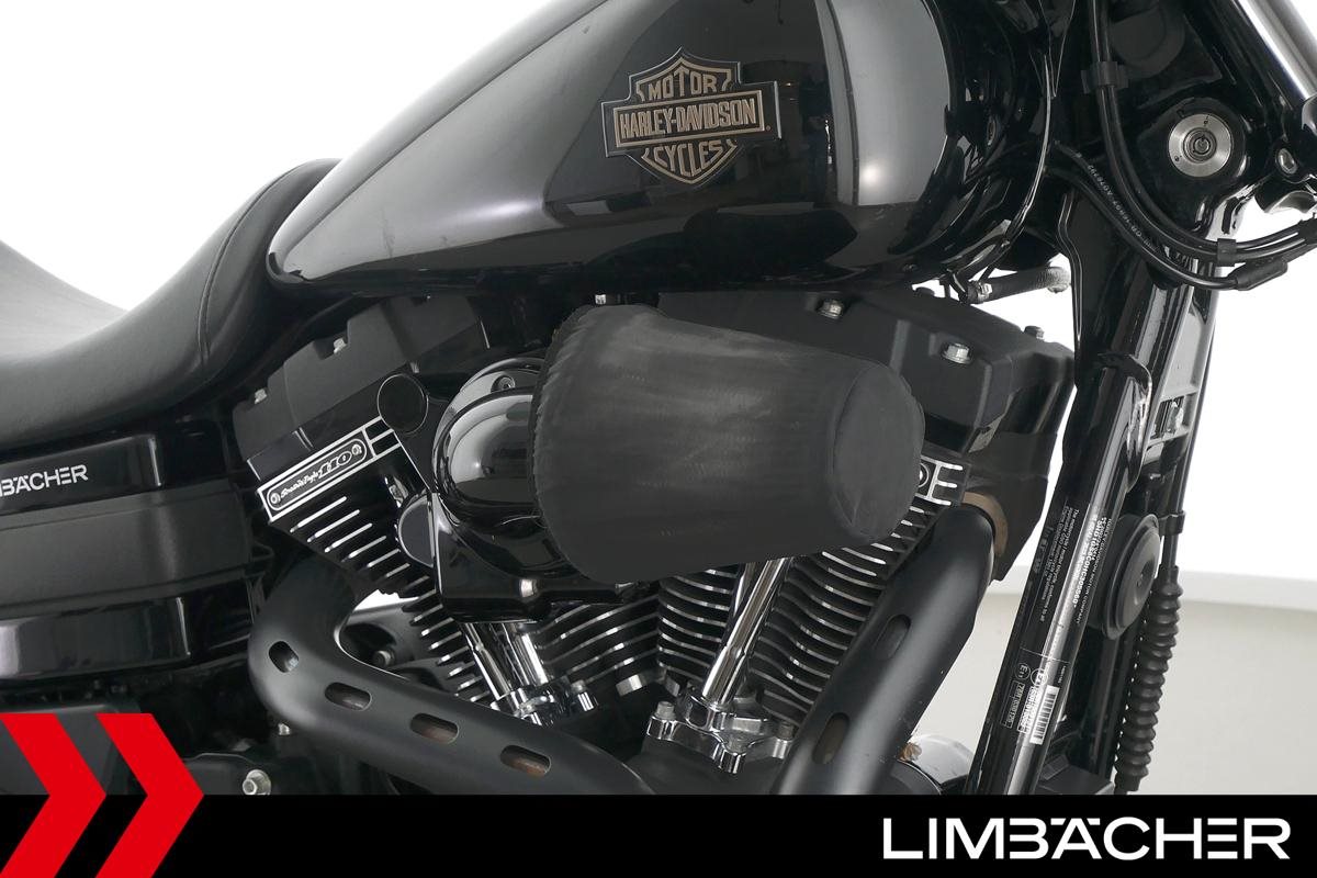 Eine Harley-Davidson Dyna Low Rider S FXDLS aus zweiter Hand in sehr gepflegtem Zustand u.a. mit Penzl-Klappenauspuff und seitlichem Kennzeichenhalter.