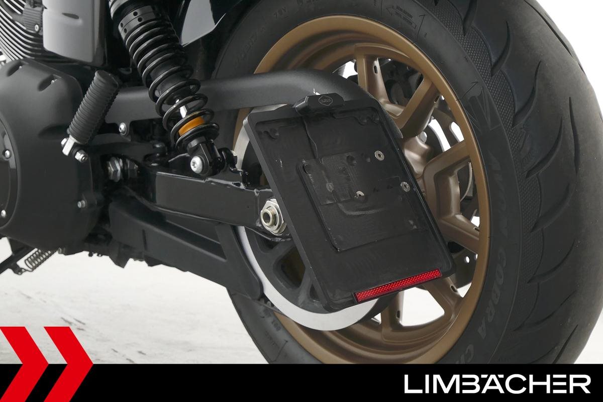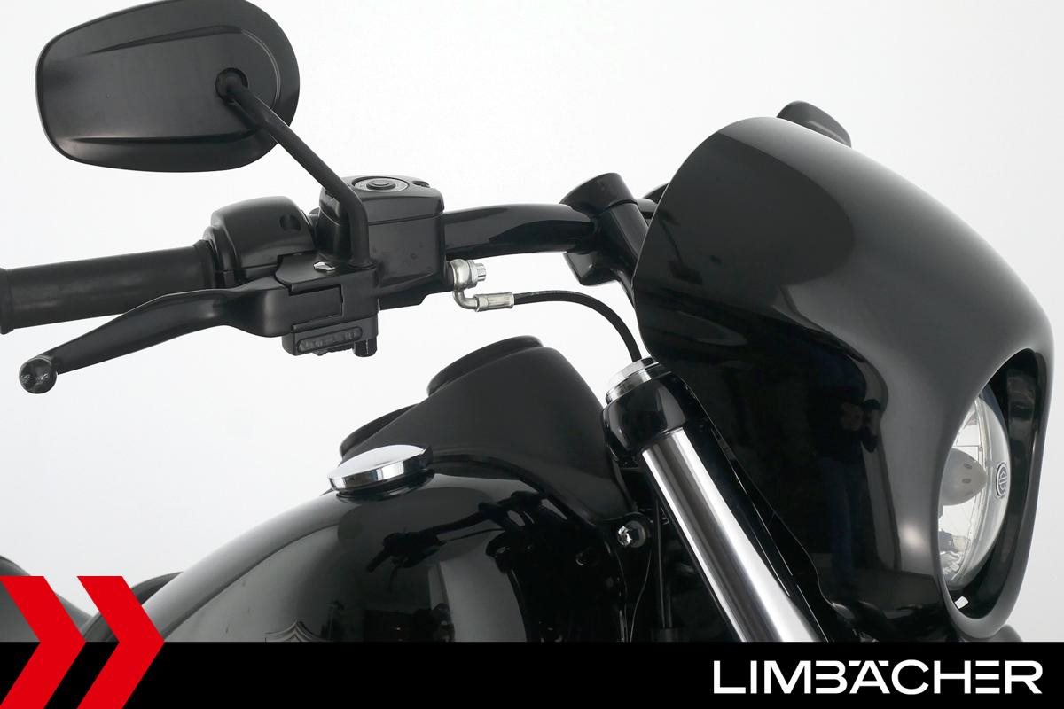 Eine Harley-Davidson Dyna Low Rider S FXDLS aus zweiter Hand in sehr gepflegtem Zustand u.a. mit Penzl-Klappenauspuff und seitlichem Kennzeichenhalter.