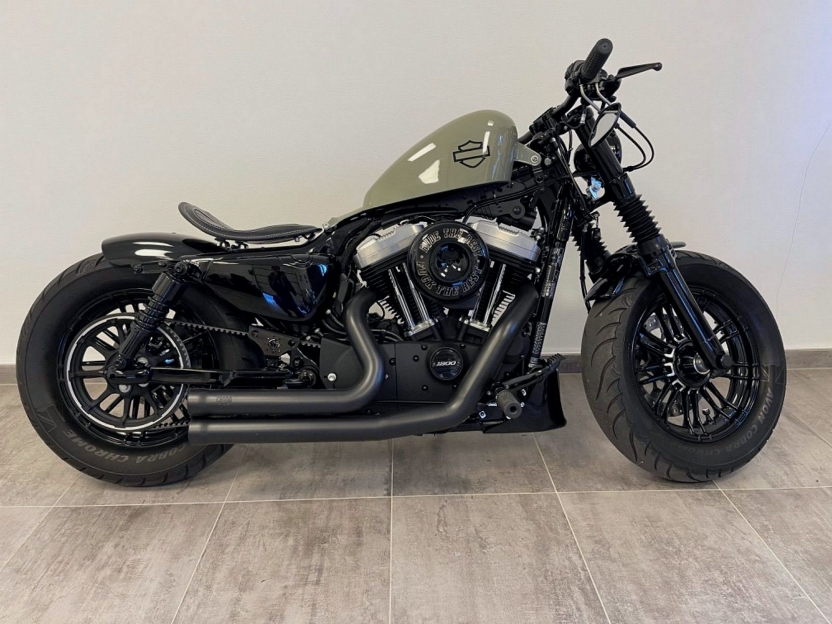 Forty eight bobber komplett Umbau schwing Sattel,seitlicher Kennzeichenhalter, Cobra Auspuffanlage mit Thor cat, dickes Vorderrad,kurze Fender vorne und hinten,vorverlegte Fussrastenanlge,usw. Neuer Service, drauf setzen und los.